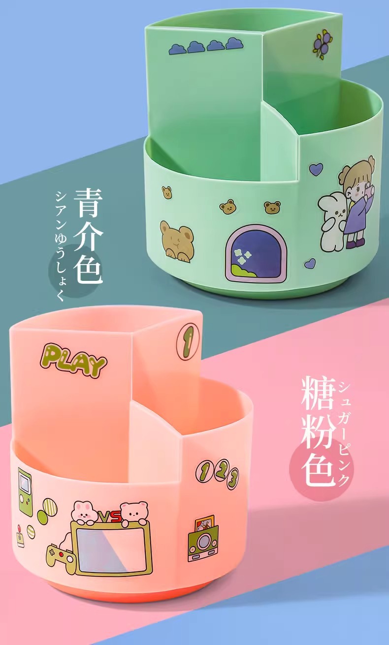 360 도 회전 펜 홀더 대용량 저장 초등학교 학생 사무실 데스크탑 어린이 소녀 귀여운 소년 책상