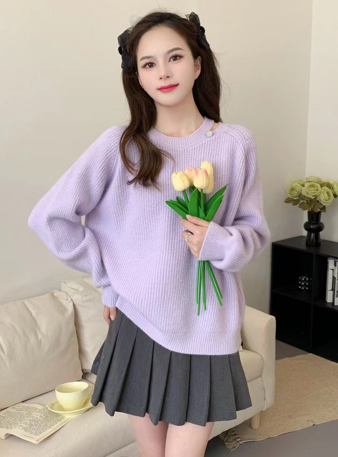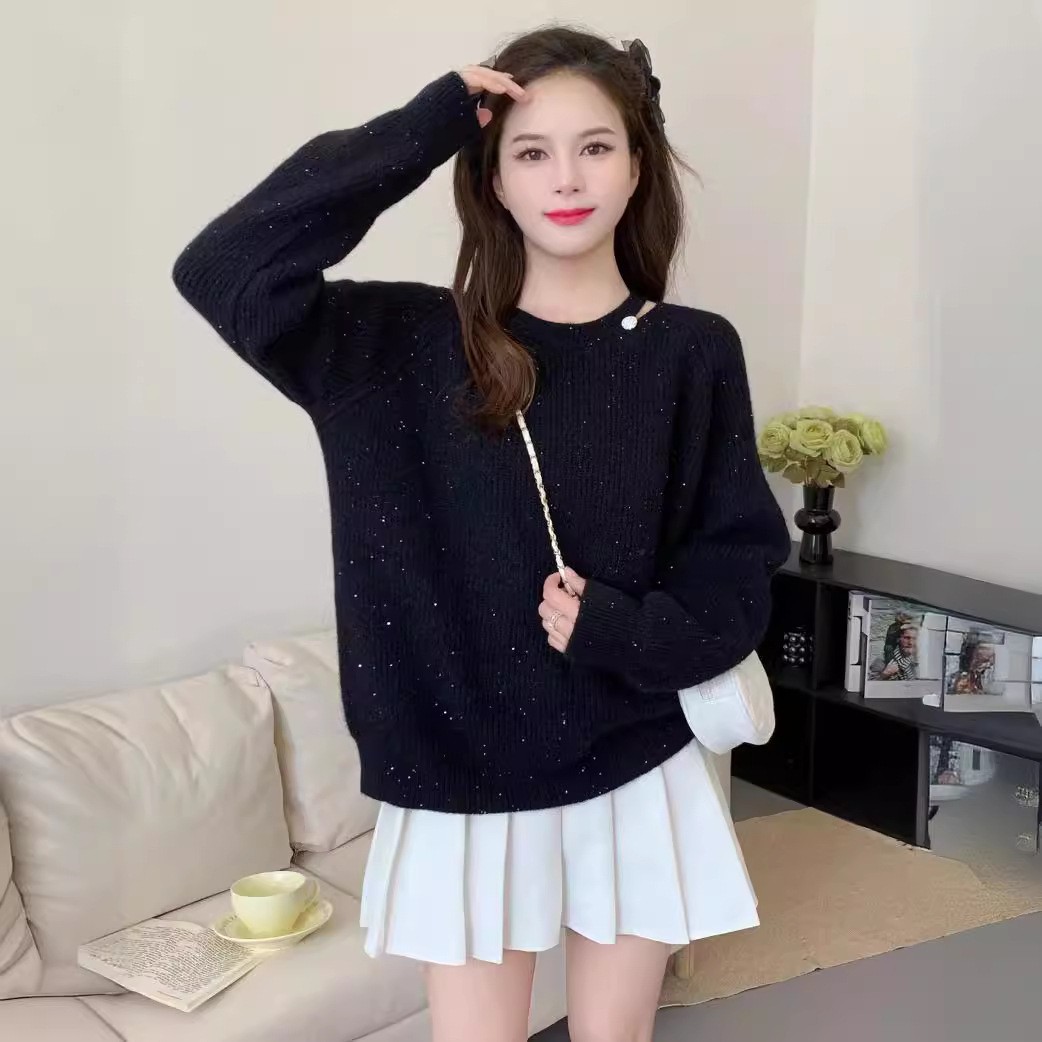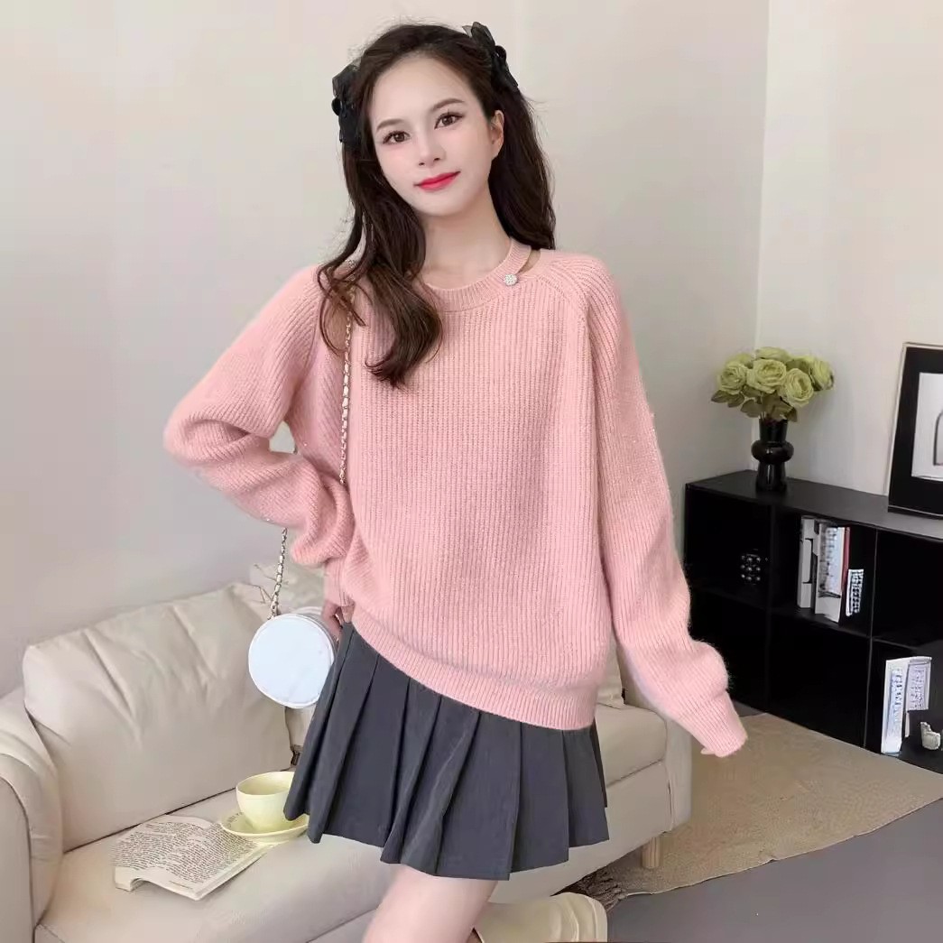 가을과 겨울 스웨터 여성 디자인 소프트 왁스 라운드 넥 루즈베이스 2024 새로운 스타일 게으른 스타일 내부 니트 스웨터 탑스토어 가기