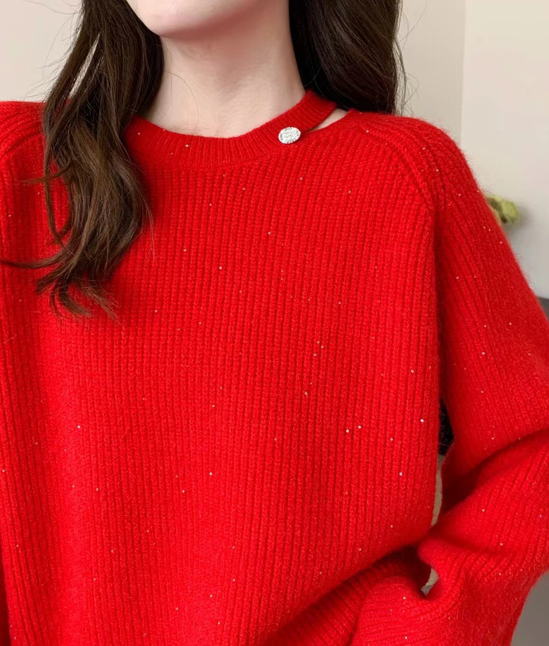 가을과 겨울 스웨터 여성 디자인 소프트 왁스 라운드 넥 루즈베이스 2024 새로운 스타일 게으른 스타일 내부 니트 스웨터 탑