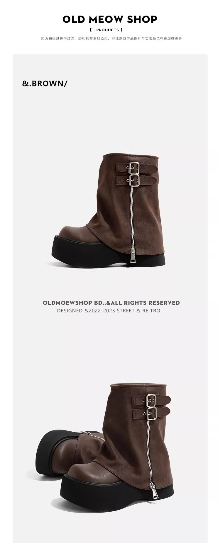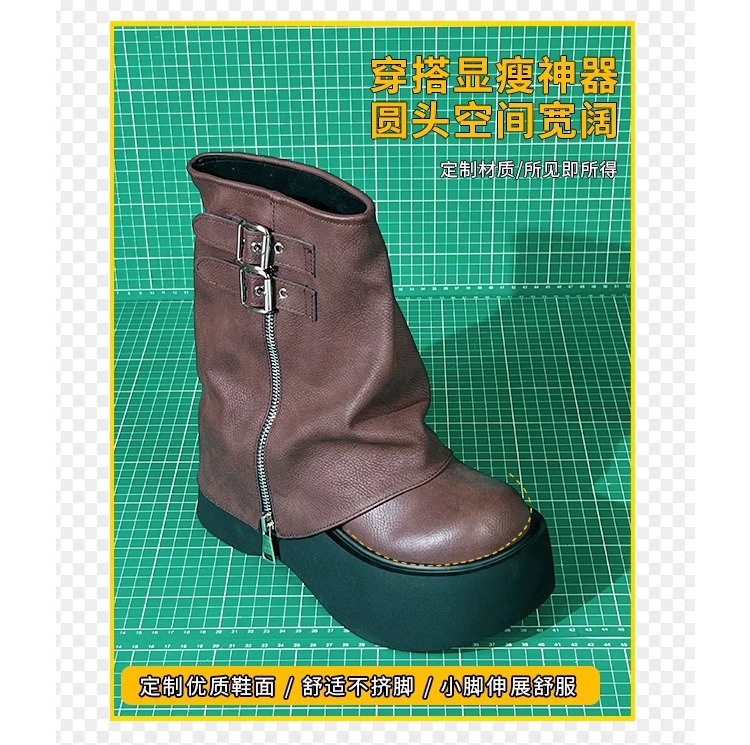 빠른 Dingjia 발목 부츠 여성 두꺼운 바닥 상승 2024 년 새로운 가을과 겨울 다크 브라운 강아지 송과 트리 바닥 마틴 부츠스토어 가기