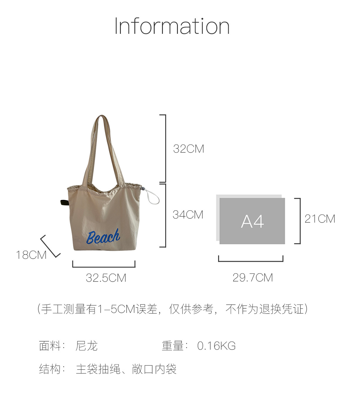 한국 스타일 새 편지 인쇄 가방 여성 대용량 나일론 어깨 가방 캐주얼 올 매치 휴대용 줄거리 가방스토어 가기