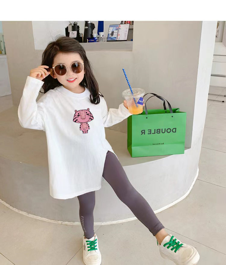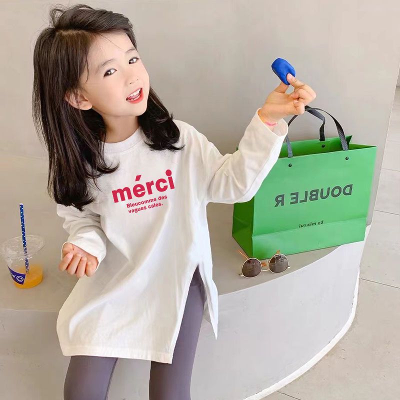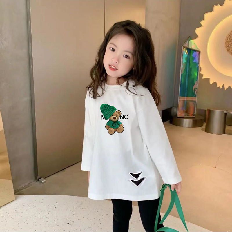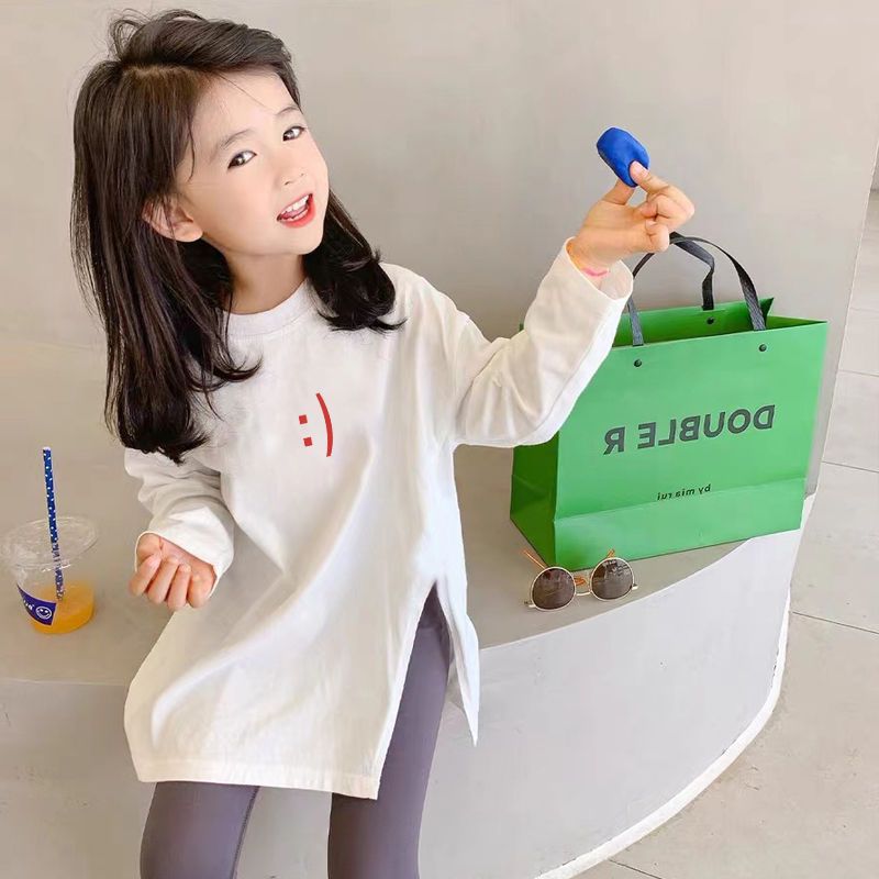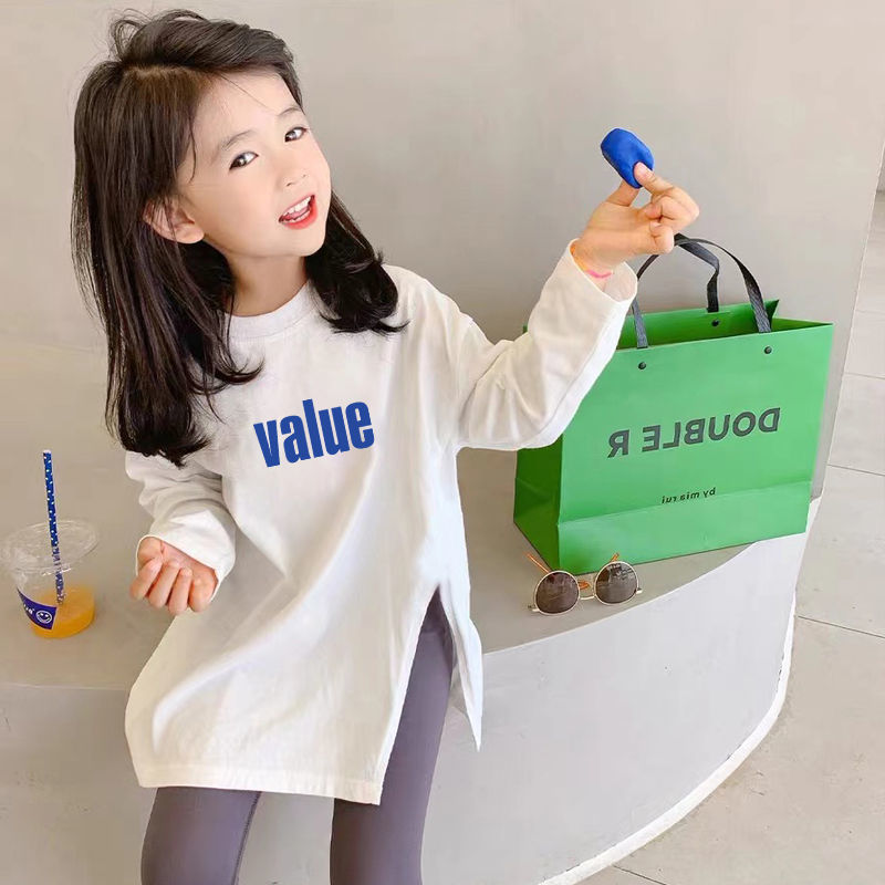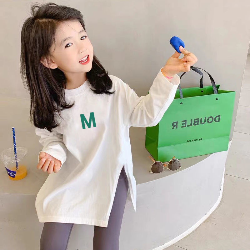 소녀 중장 분할 티셔츠 2024 가을 새 한국 소녀의 성격 불규칙한 긴팔 만화 탑