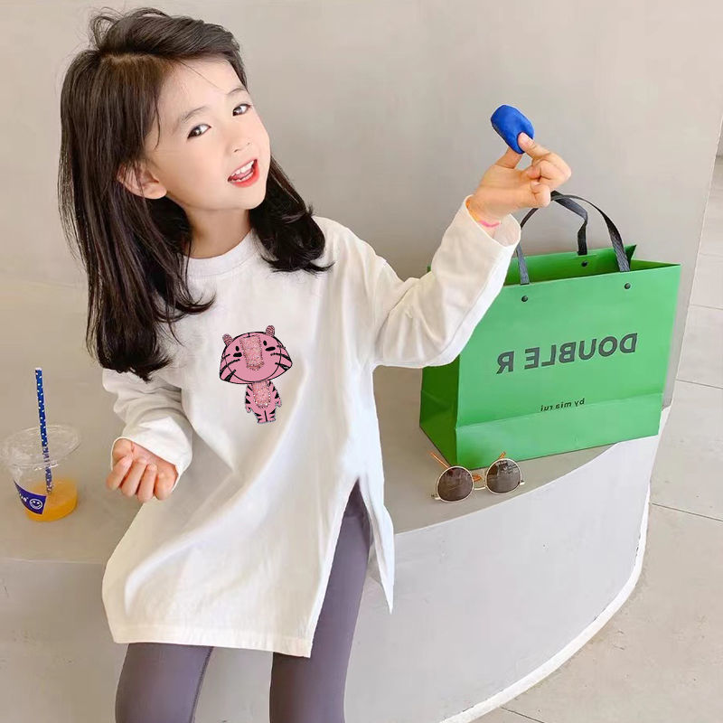 소녀 중장 분할 티셔츠 2024 가을 새 한국 소녀의 성격 불규칙한 긴팔 만화 탑스토어 가기