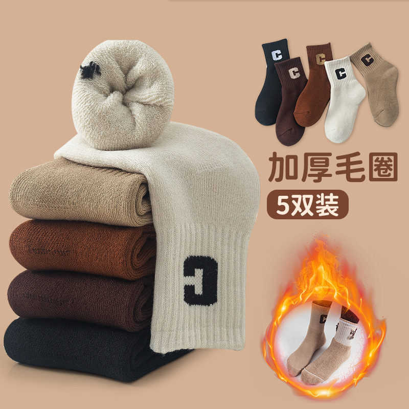 양말 어린이 테리 기모 두꺼운 피부 친화적 인 따뜻한 아기 스타킹 가을과 겨울 소년 소녀 바닥 양말 도매