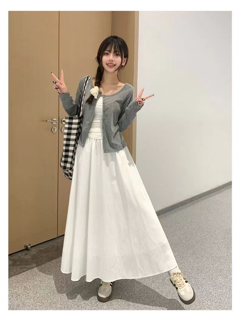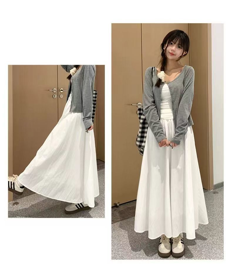 아이보리 스커트 여자 여름 2024 새로운 스타일 스커트 롱 스커트 패션 올 매치 스위트 페어리 캐주얼 A 라인 스커트스토어 가기