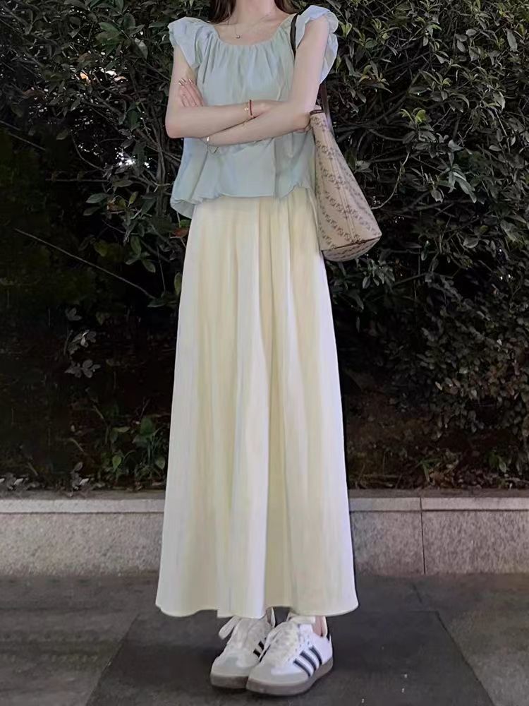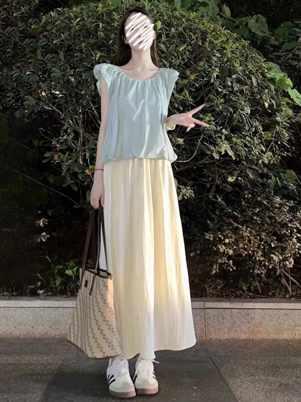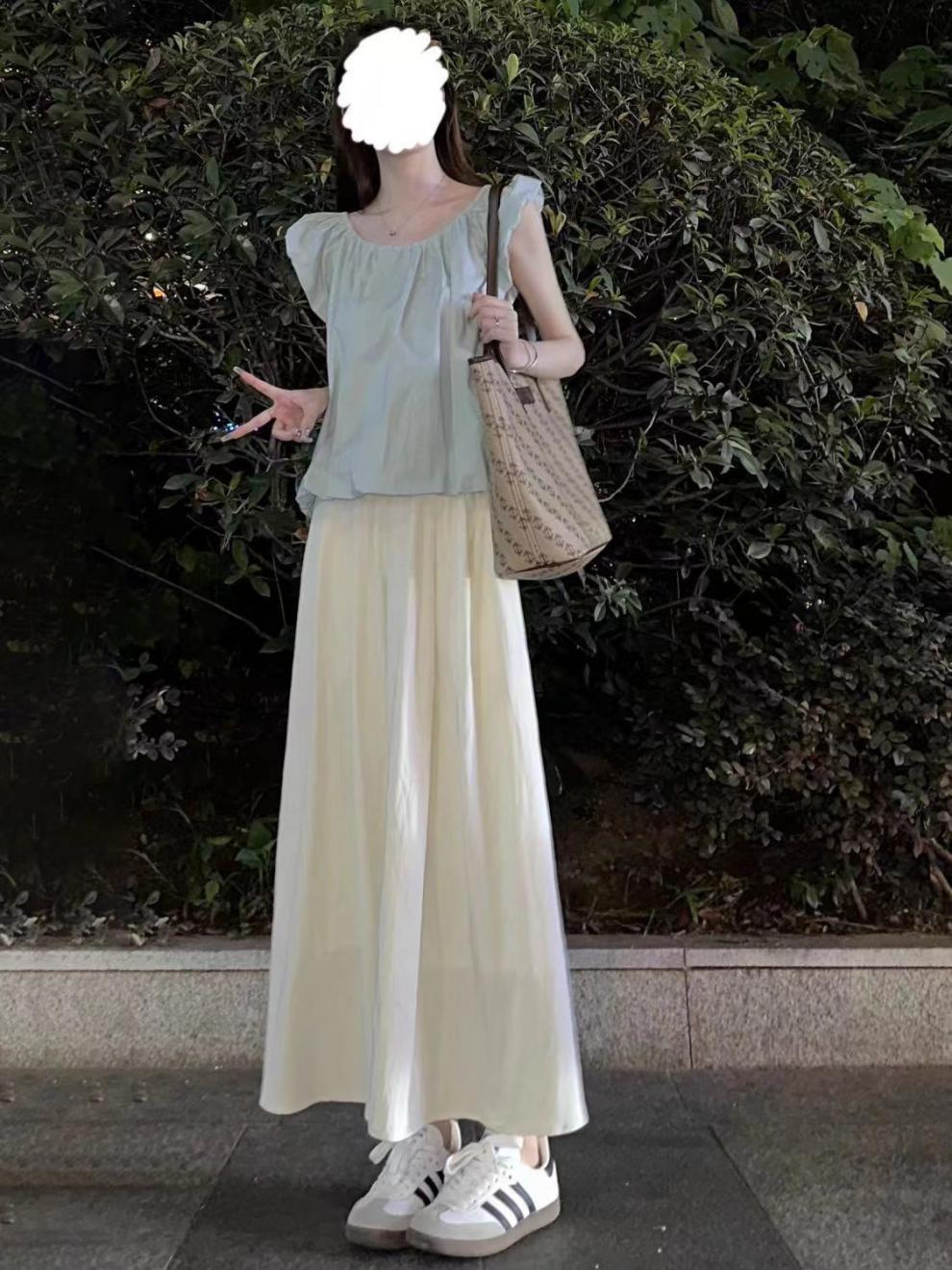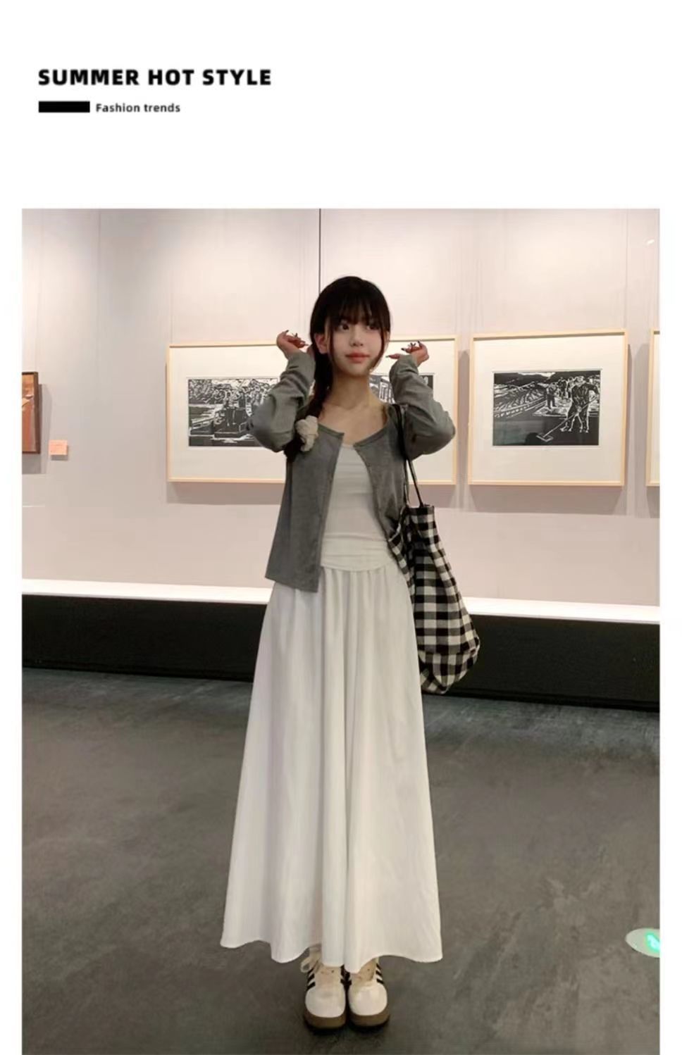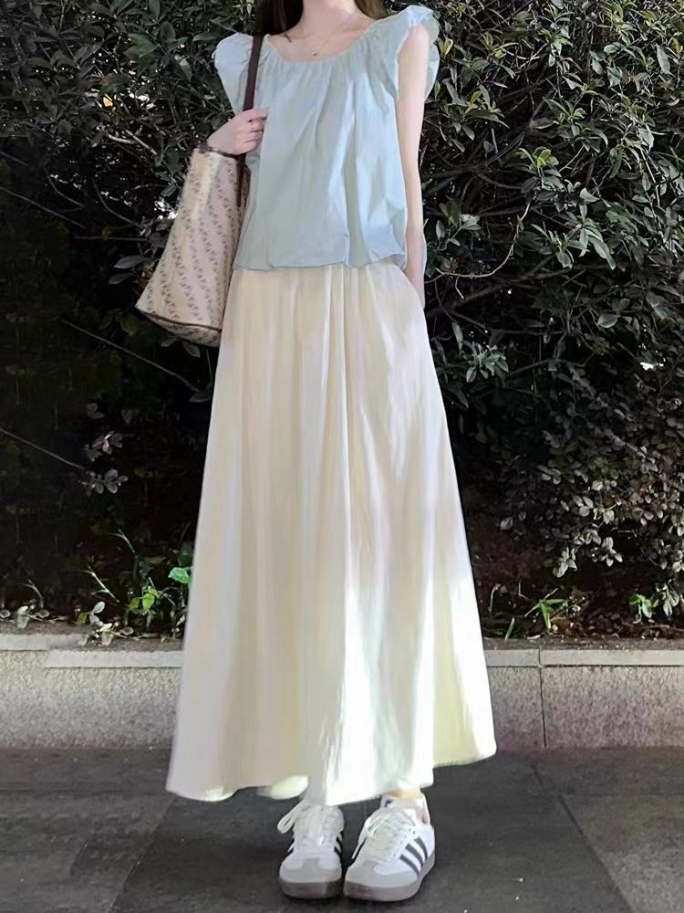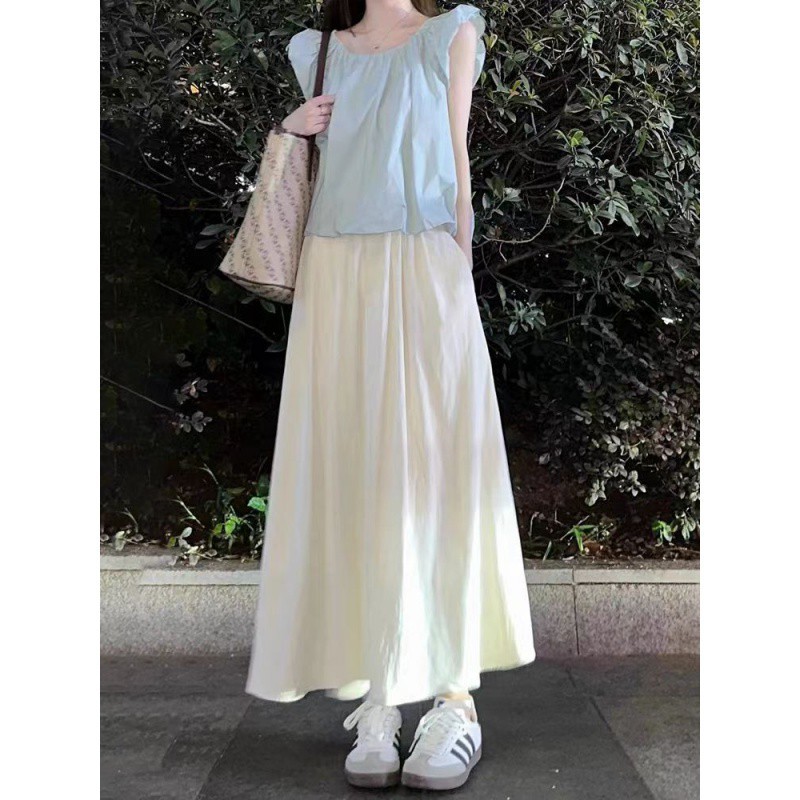 아이보리 스커트 여자 여름 2024 새로운 스타일 스커트 롱 스커트 패션 올 매치 스위트 페어리 캐주얼 A 라인 스커트