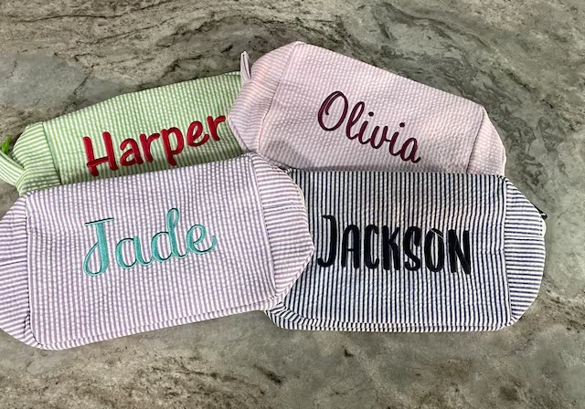 Etsy 맞춤형 자수 Seersucker 화장품 가방 휴대용 워시 스토리지 여행 사업스토어 가기