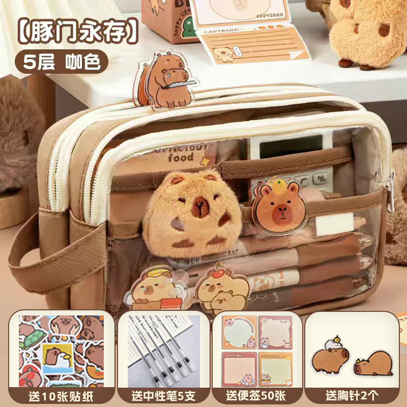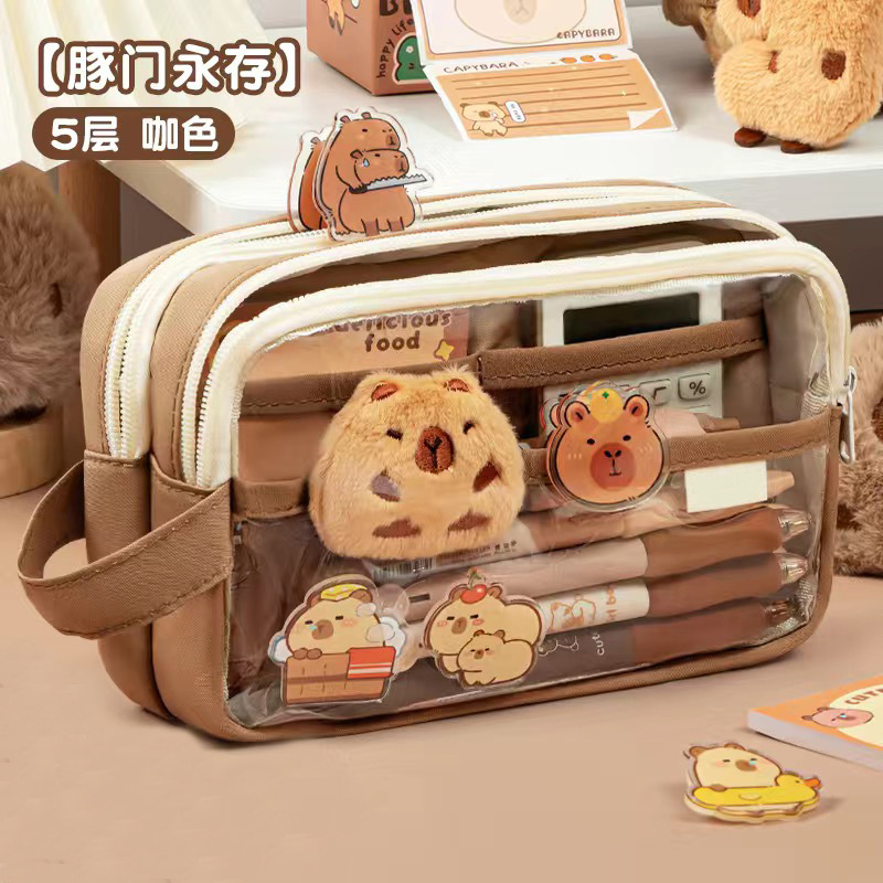 카피발라 연필 케이스 대용량 투명 휴대용 마일라드 컬러 다기능 문구 연필 케이스 중학교 및 초등학생