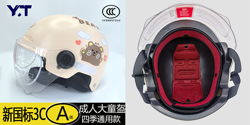 3C 전기 오토바이 헬멧 여름 배터리 자동차 안전 헬멧 귀여운 할리 하프 헬멧 유니섹스 사계절 만화스토어 가기