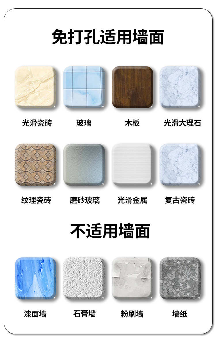 (2)安装请注意,墙面需平整坚固的玻璃瓷砖等。不可用在粉刷墙,墙纸,石灰墙等不平整不坚固的墙面上。上墙后,像手机贴膜一样,把贴片里的空气挤压出来就可以用了。