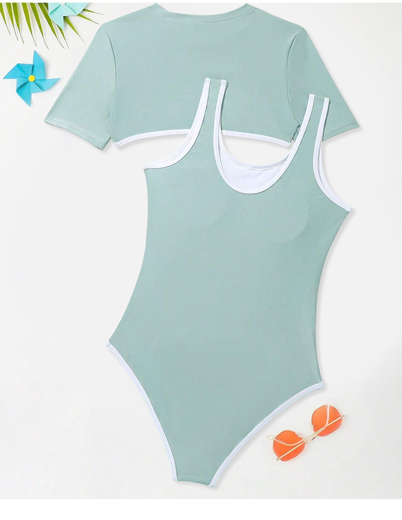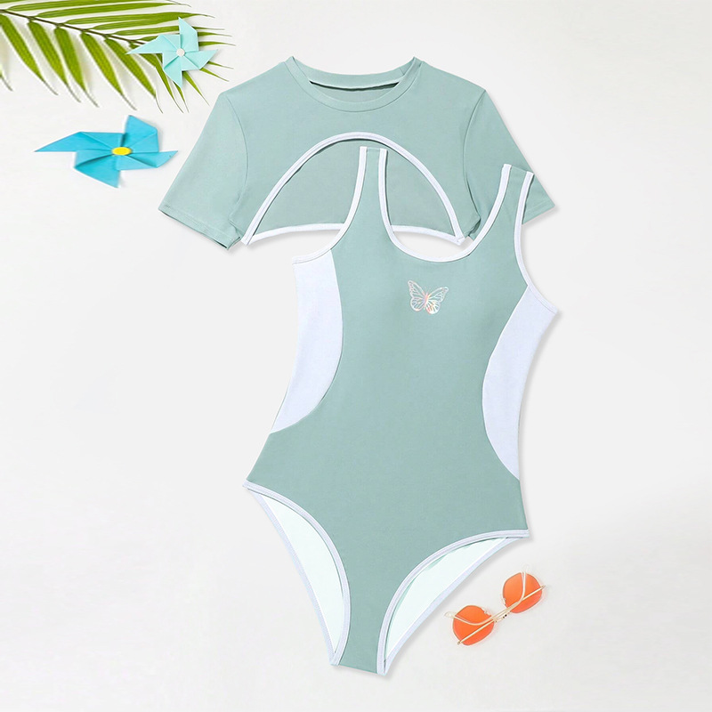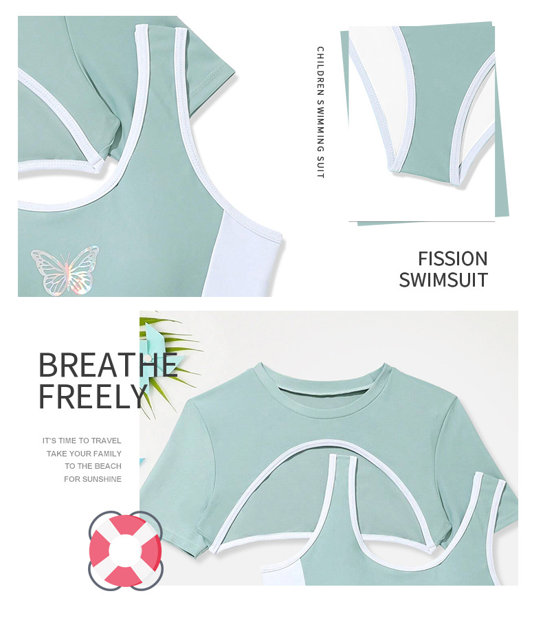 2025년 신상 여아 수영복 반팔 투피스 스포츠 원피스 조끼형 중대형 아동 해외 무역 분리형 수영복