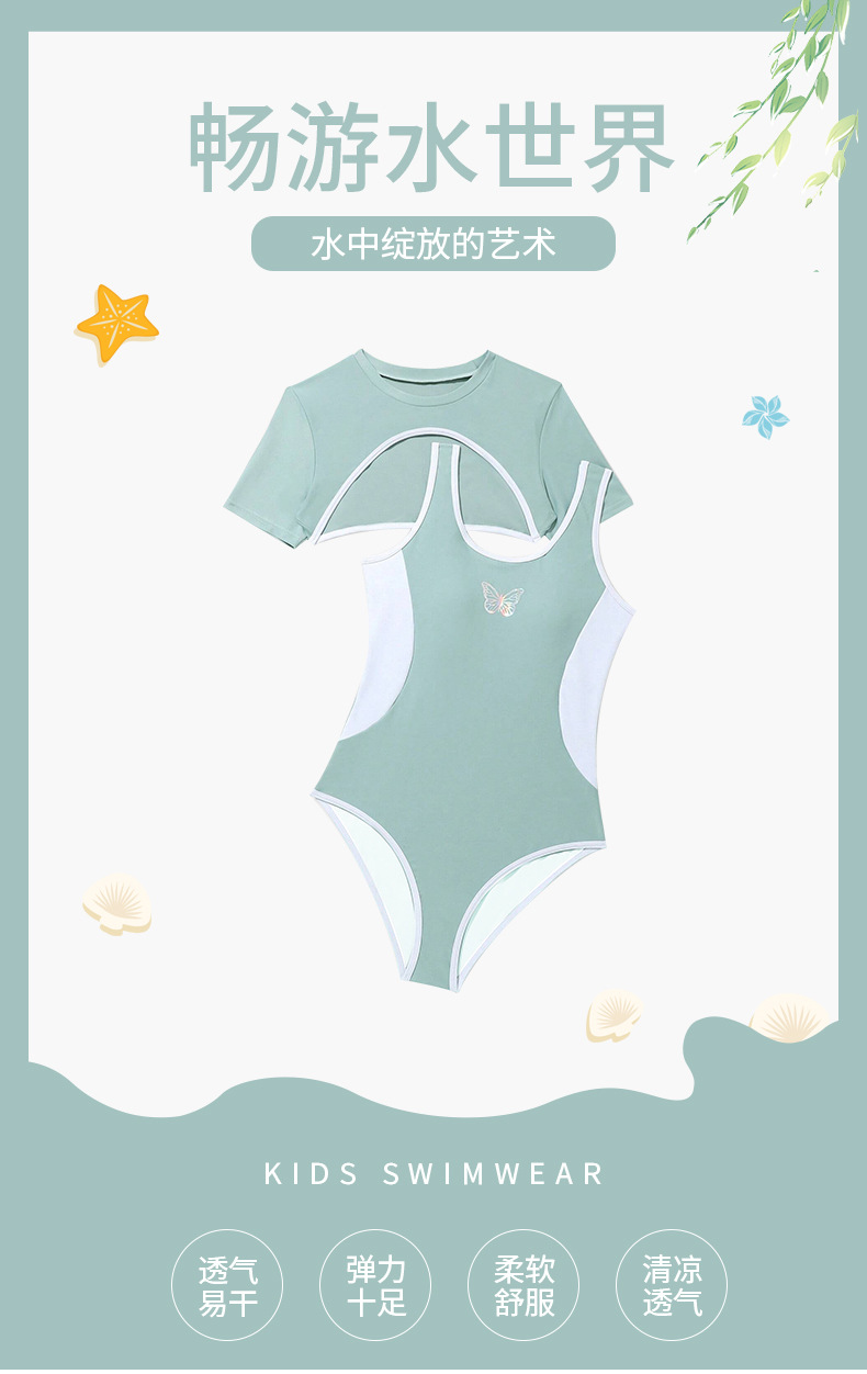 2025년 신상 여아 수영복 반팔 투피스 스포츠 원피스 조끼형 중대형 아동 해외 무역 분리형 수영복스토어 가기