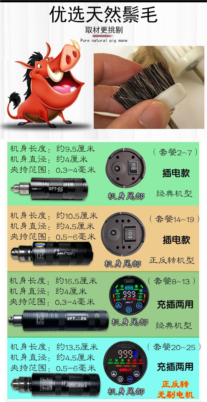 • 패키지 19: 업그레이드된 정회전 및 역회전 + 속도 조절★775 고출력 속도 조절 [대형 브러시 플래그십 세트