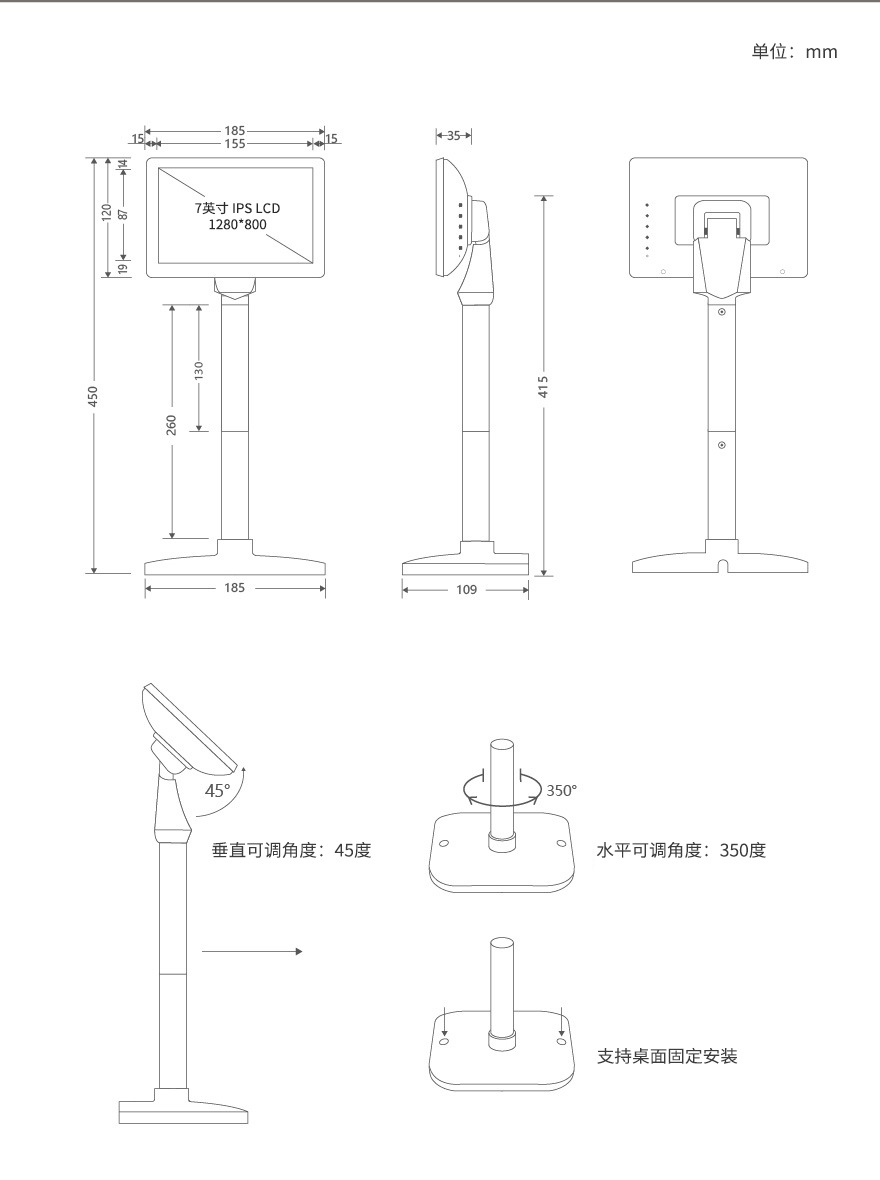 POS 디스플레이 10.1 "데스크탑 폴 컴퓨터 서브 스크린 hdmi 작은 화면 고객 디스플레이