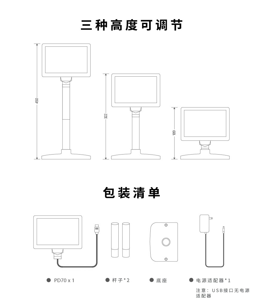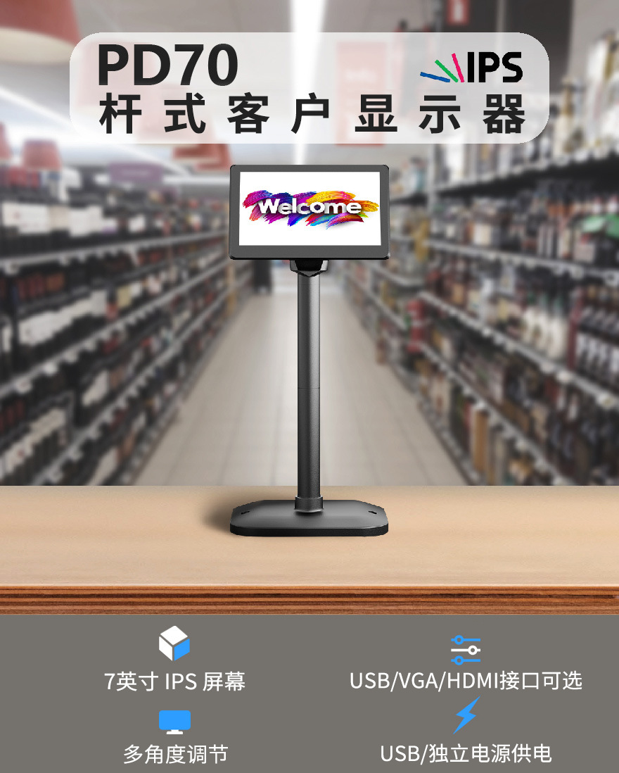 POS 디스플레이 10.1 "데스크탑 폴 컴퓨터 서브 스크린 hdmi 작은 화면 고객 디스플레이스토어 가기