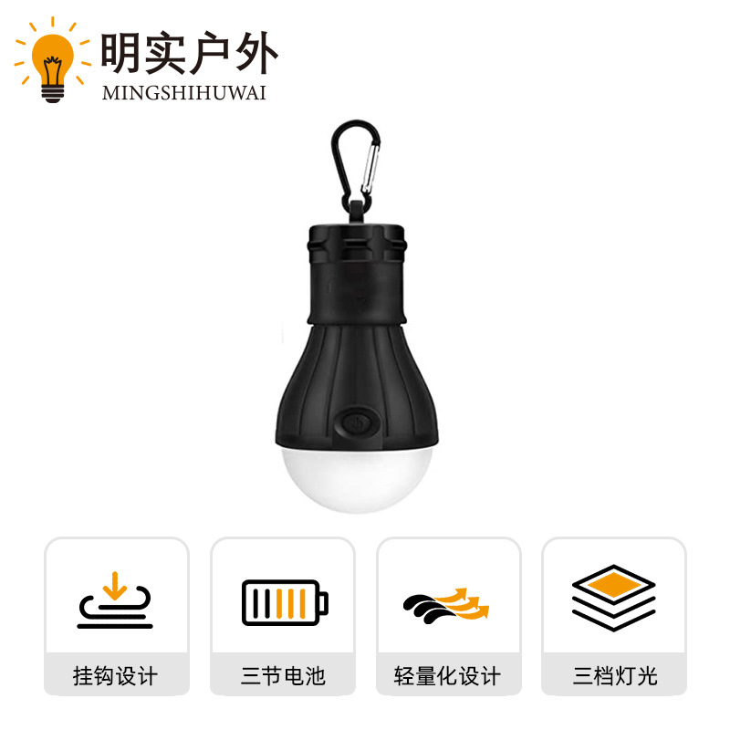 露营灯是由3节AAA电池供电,漫射光与3节能球LED灯泡。野营灯,挂在帐篷或树枝上的挂钩。这是一个很好的露营灯在露天的夜晚。