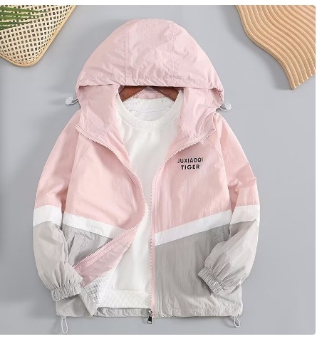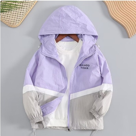 소녀 선스크린 의류 2024 여름 새 스타일 지퍼 후드 통기성 코트 트렌디 한 어린이 피부 의류스토어 가기