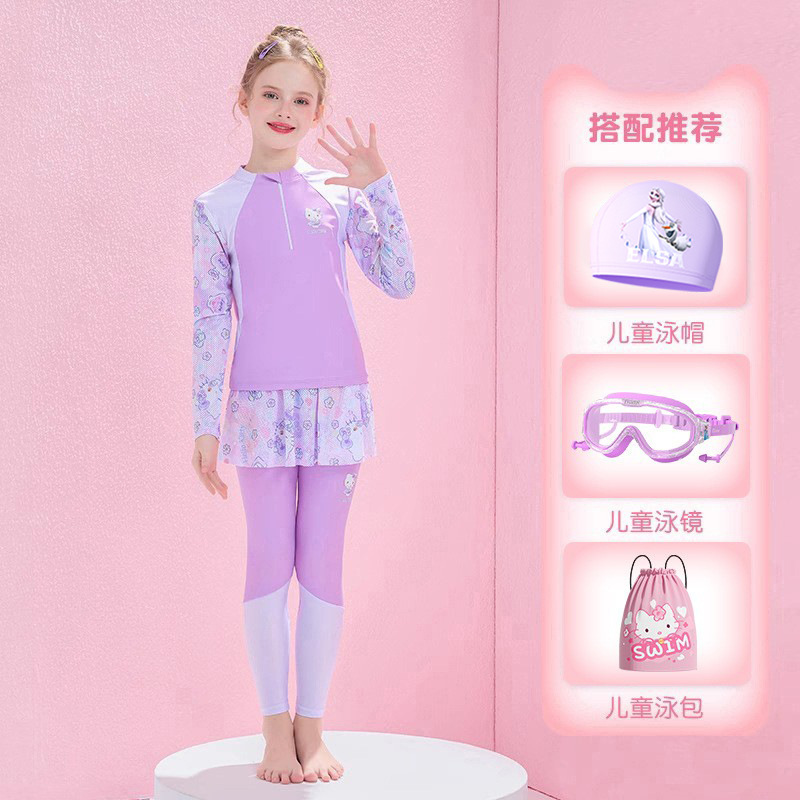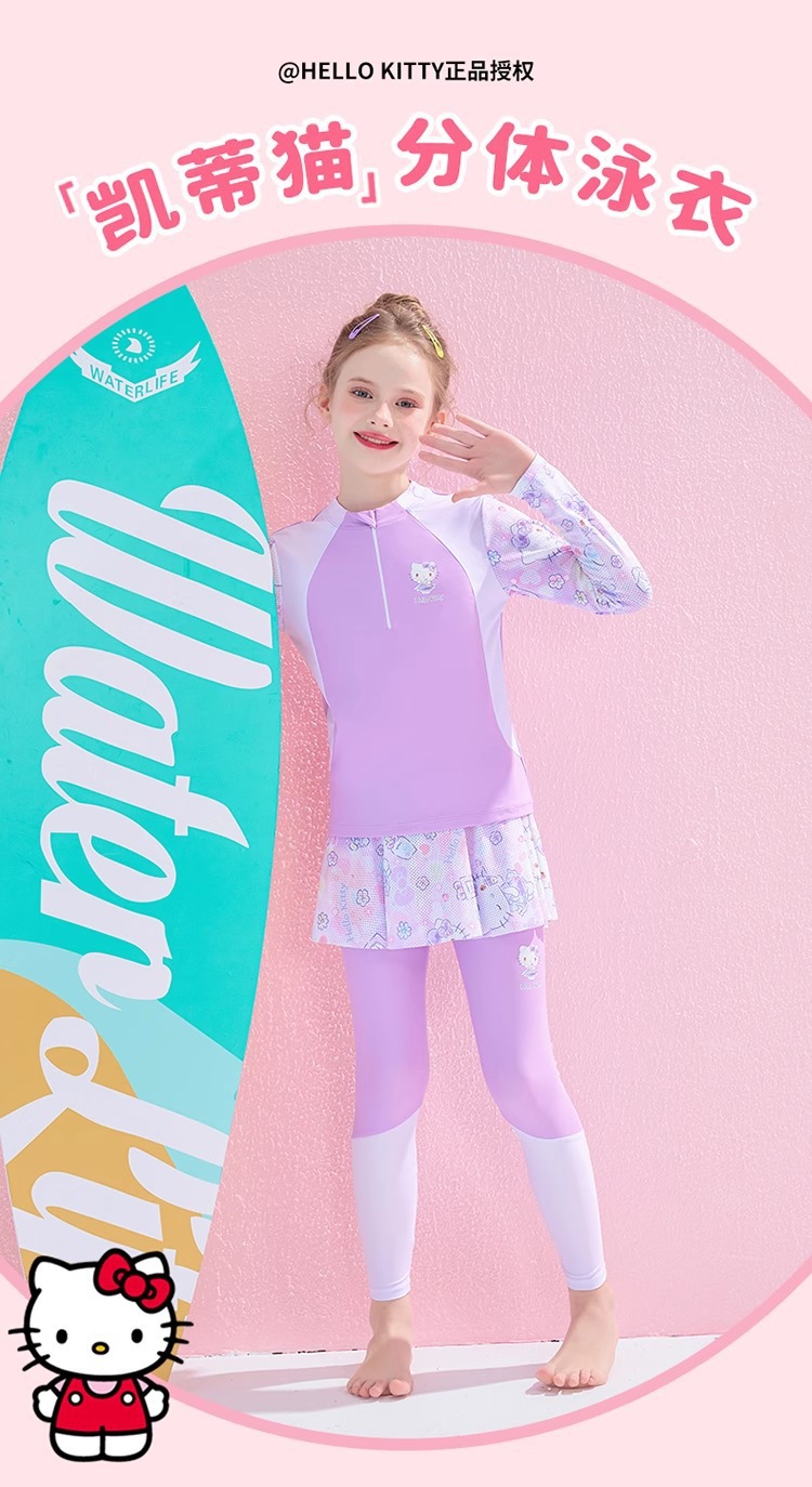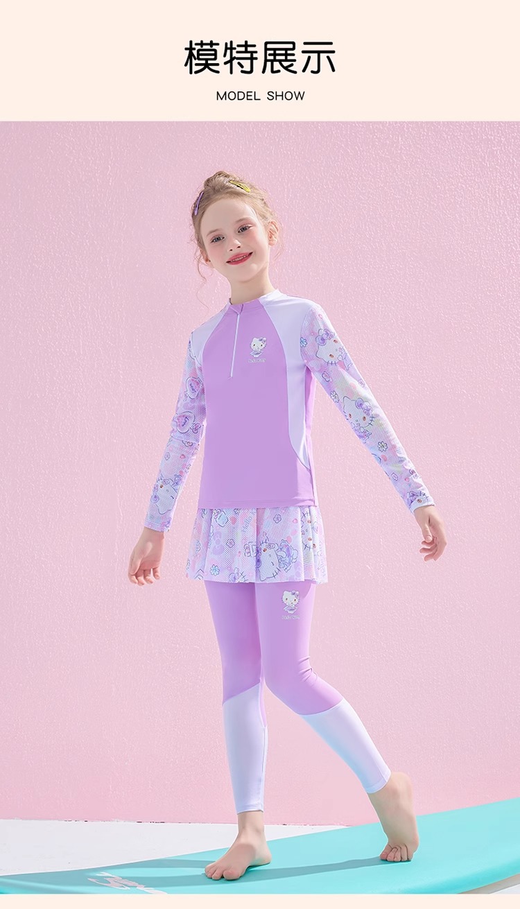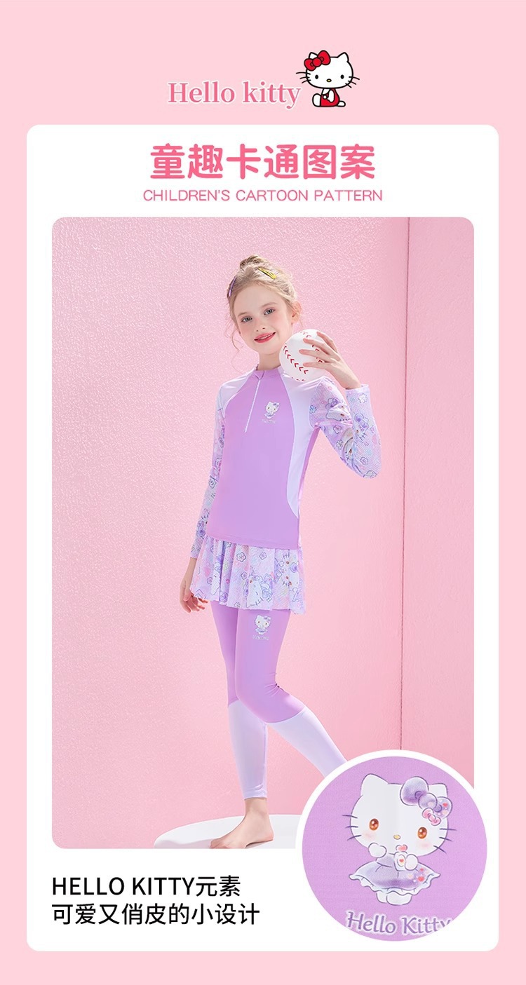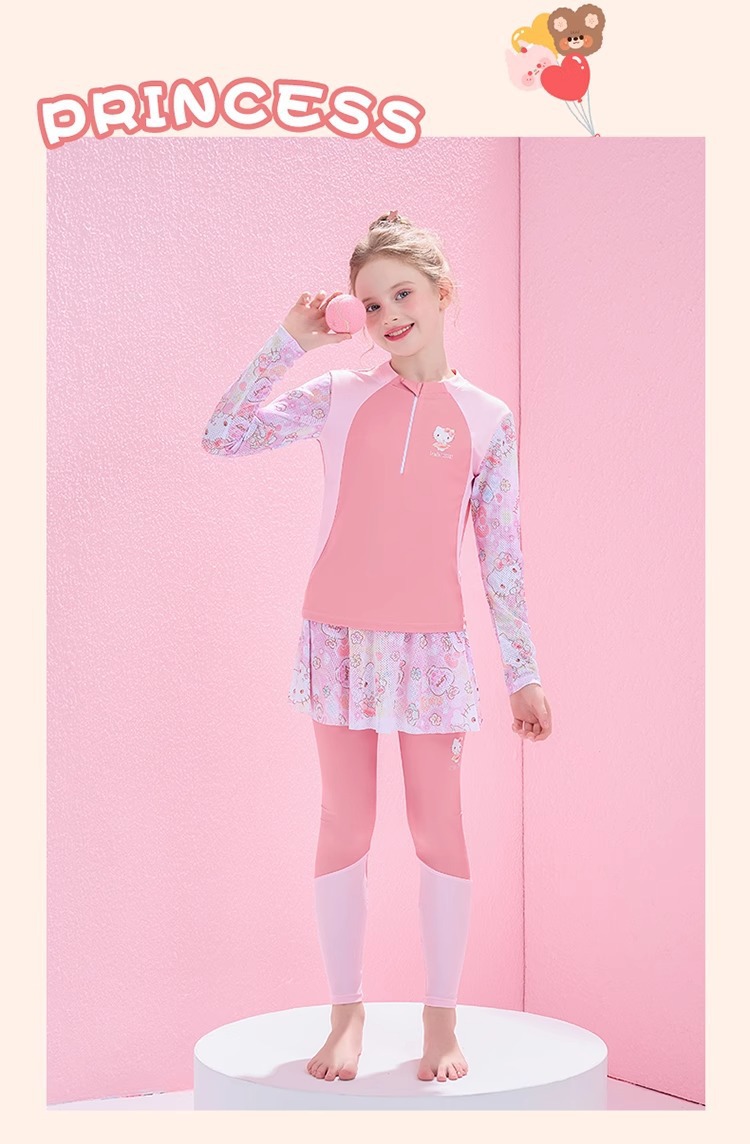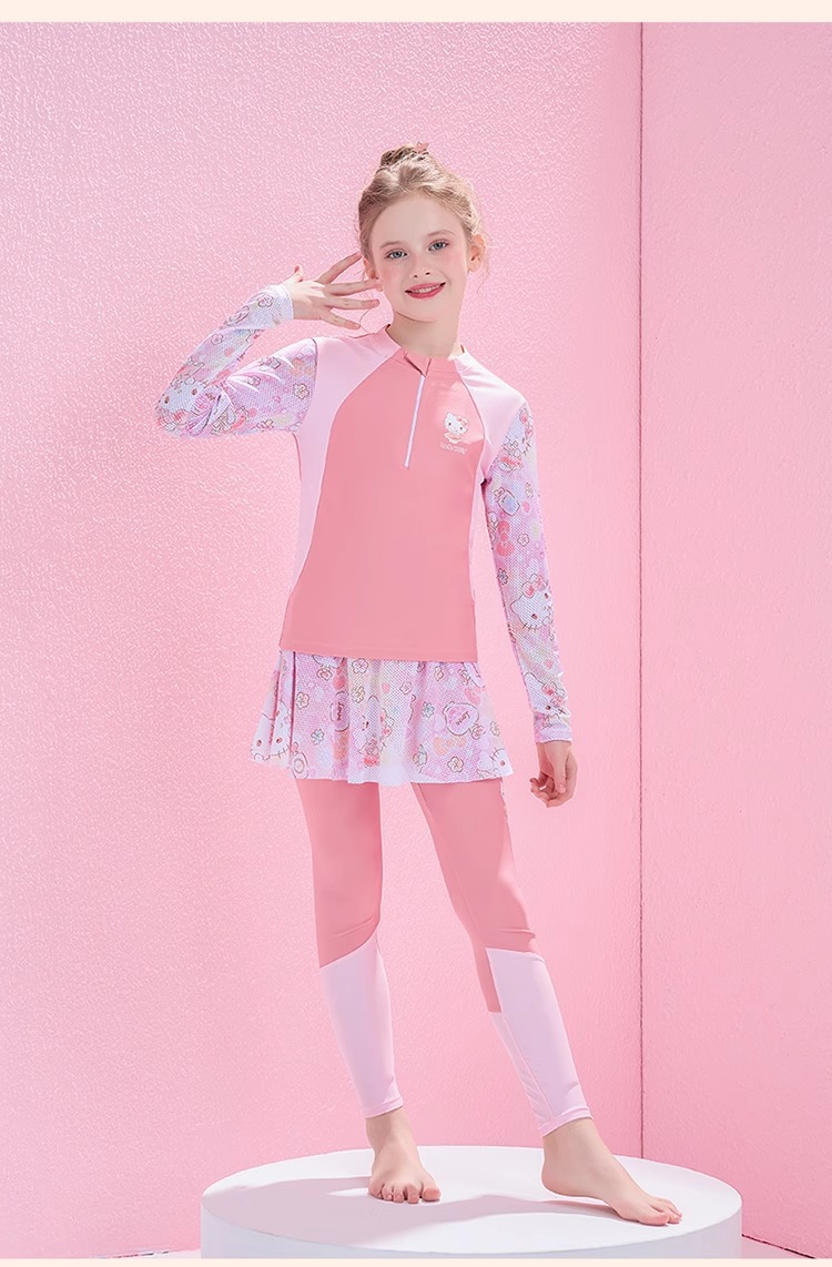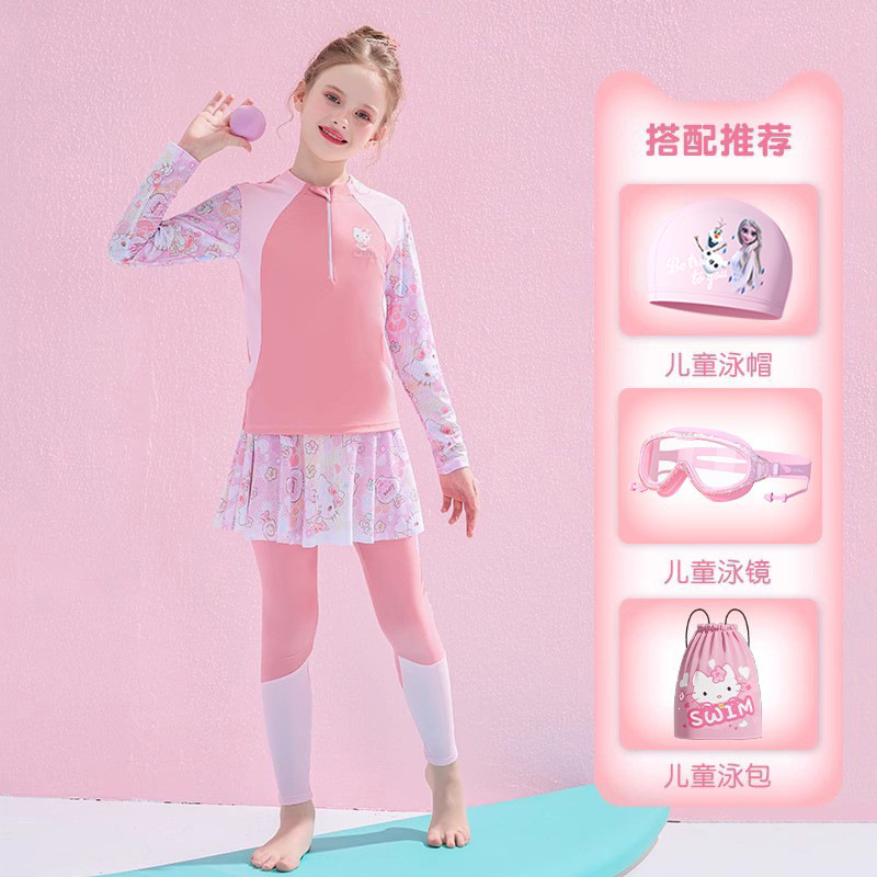헬로 키티 어린이 수영복 소녀 분할 긴 소매 바지 수영복 2024 대형 어린이 여자 수영복스토어 가기