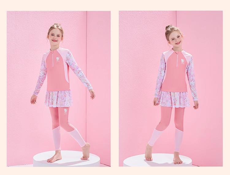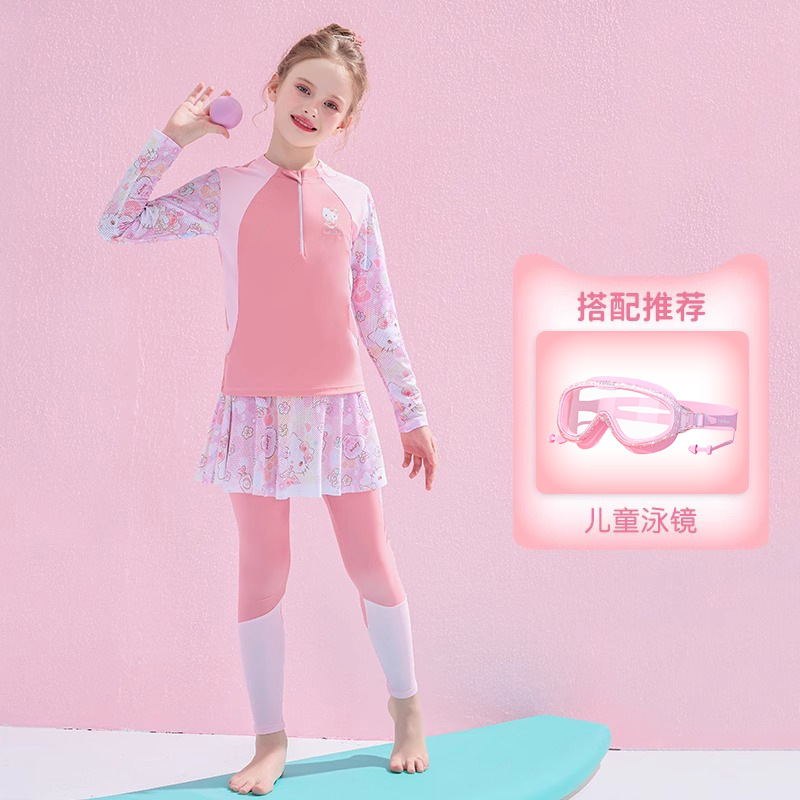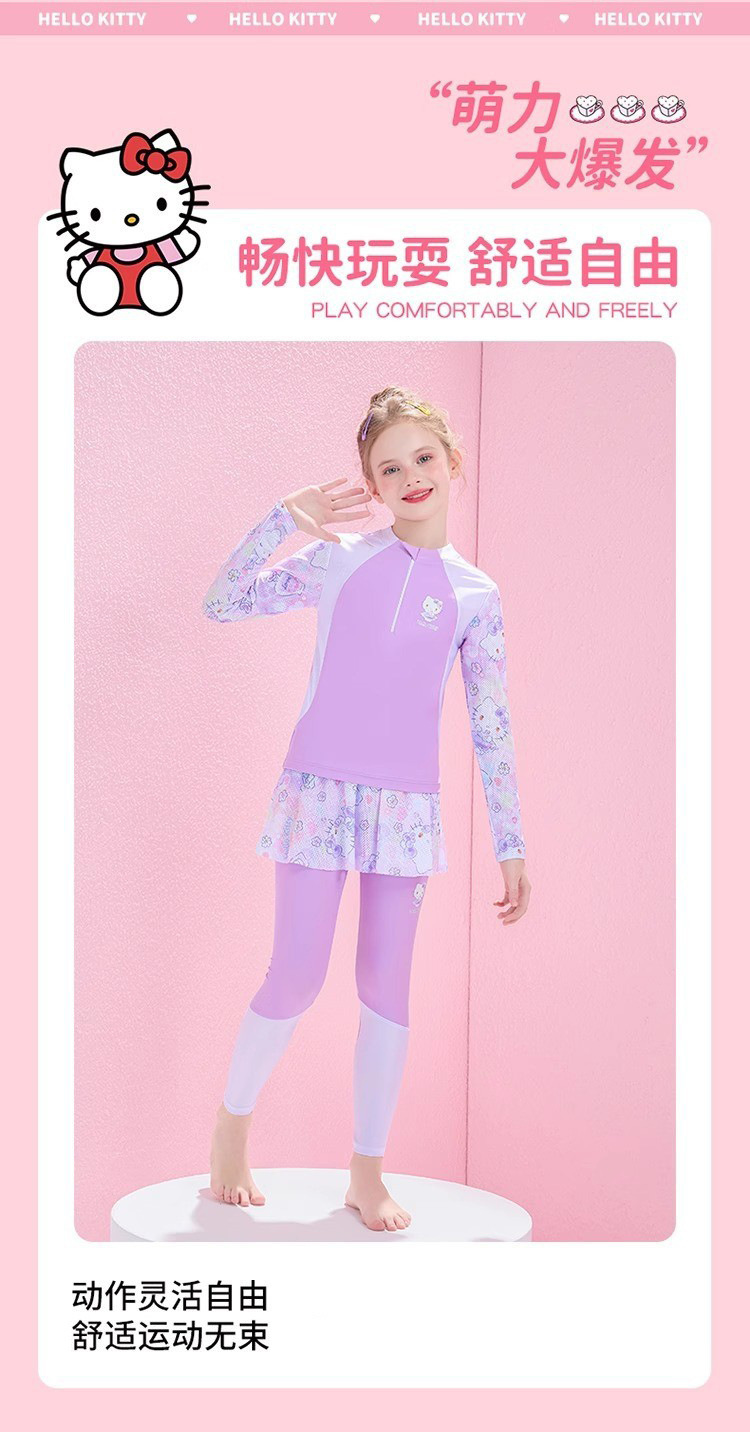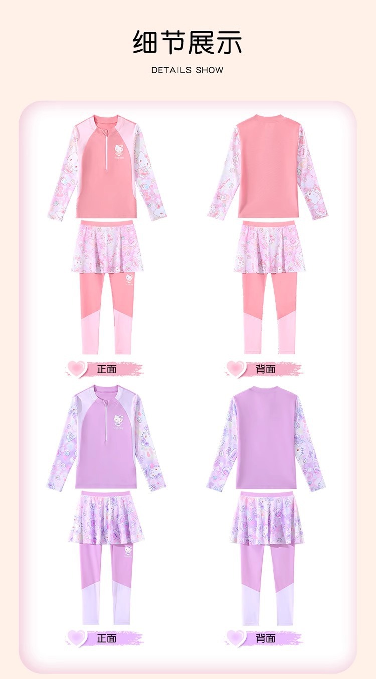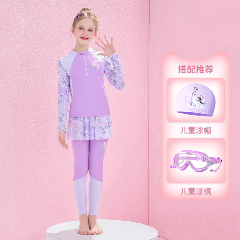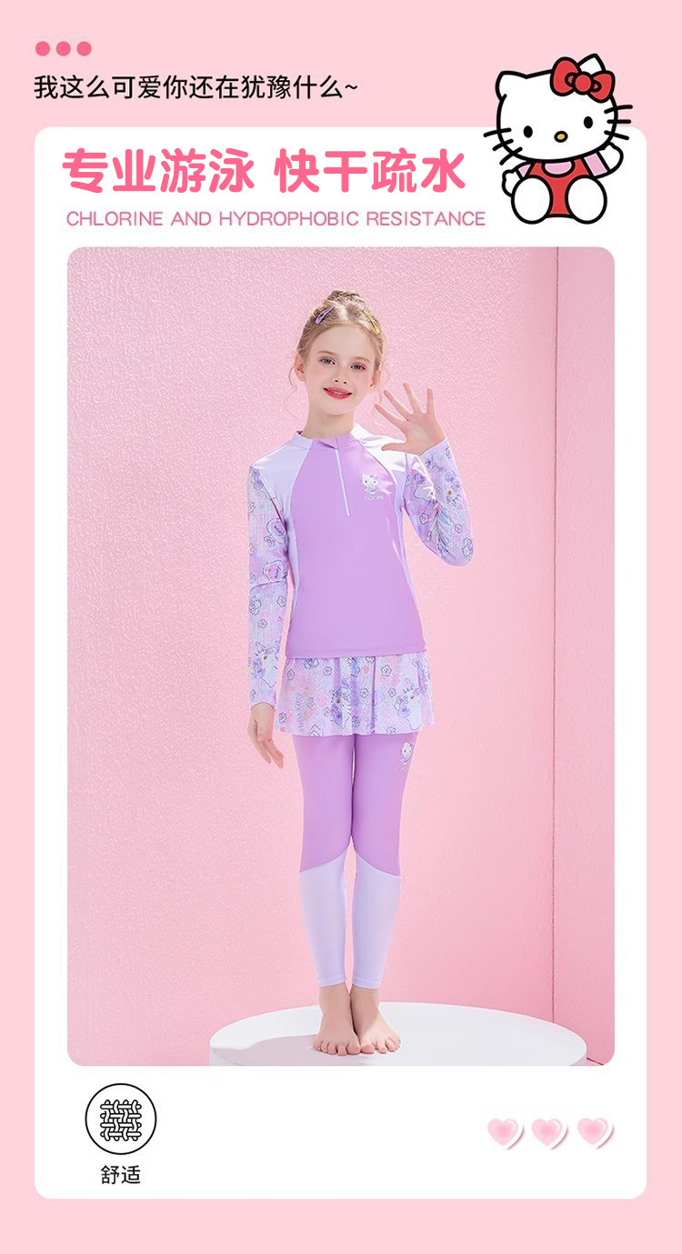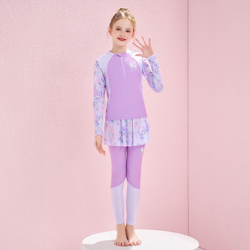 헬로 키티 어린이 수영복 소녀 분할 긴 소매 바지 수영복 2024 대형 어린이 여자 수영복스토어 가기