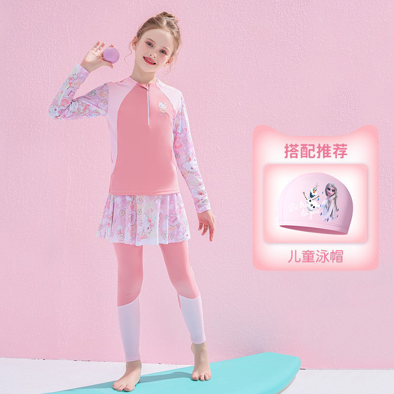헬로 키티 어린이 수영복 소녀 분할 긴 소매 바지 수영복 2024 대형 어린이 여자 수영복