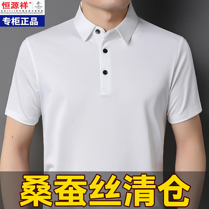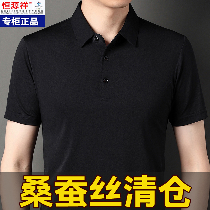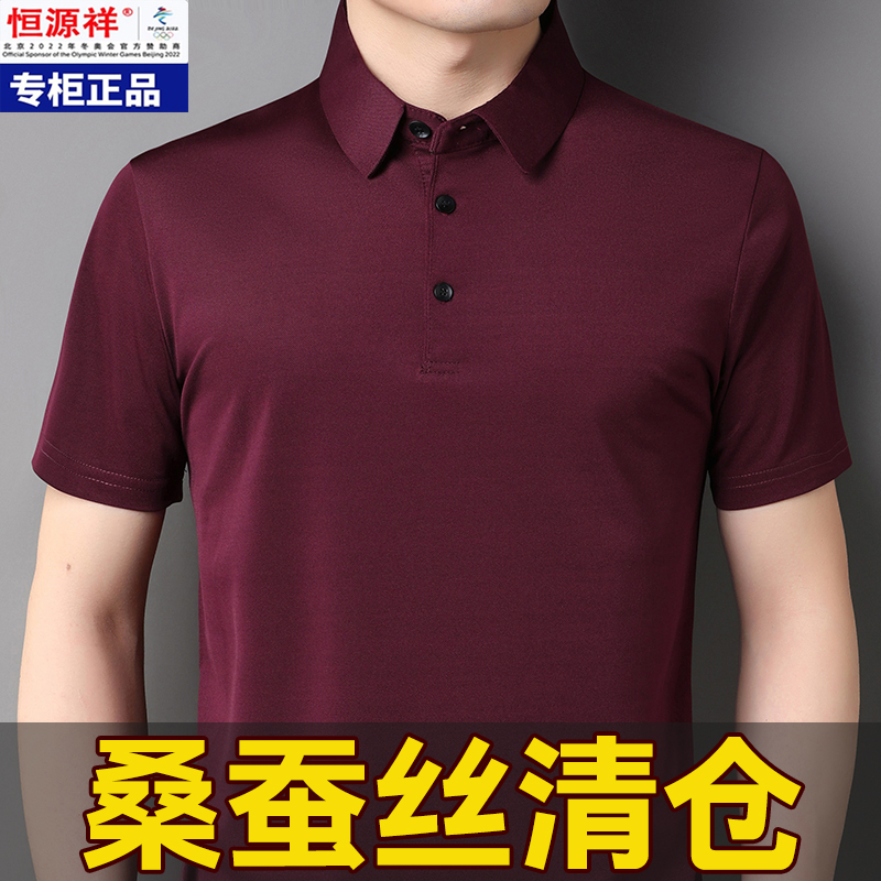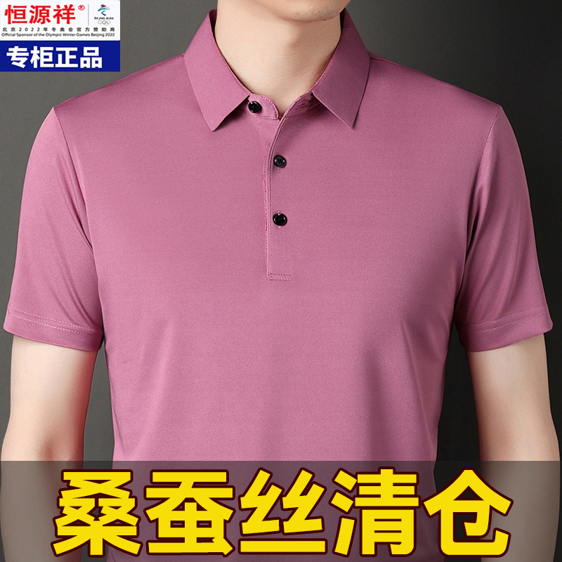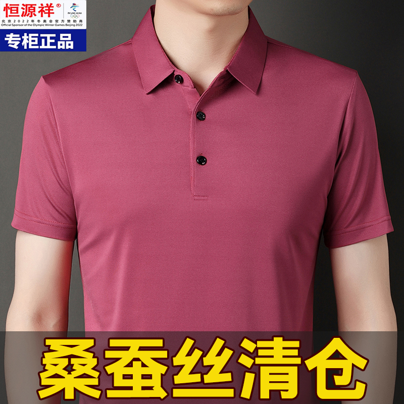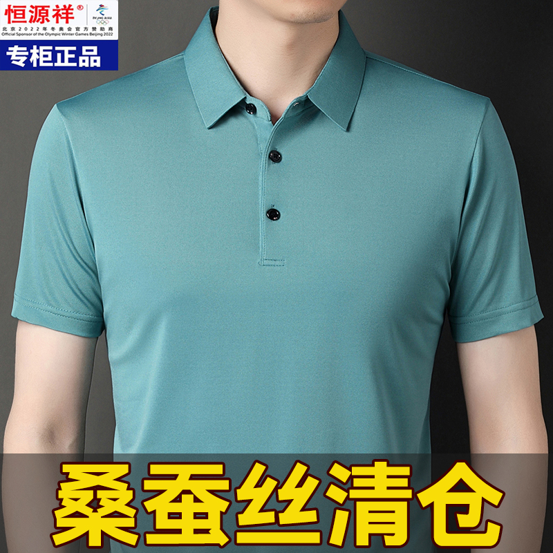 여름 Hengyuanxiangcai 양 100% 뽕나무 실크 반팔 티셔츠 남성용 얼음 실크 대형 실크 청년 및 중년 폴로 셔츠