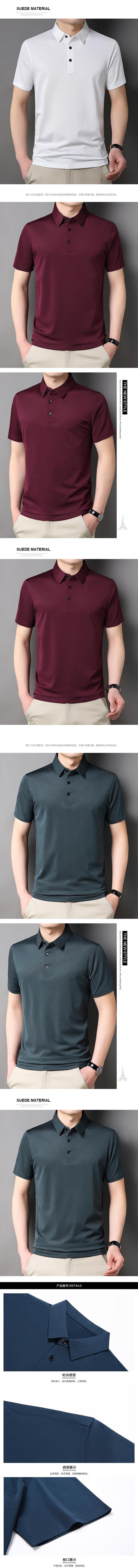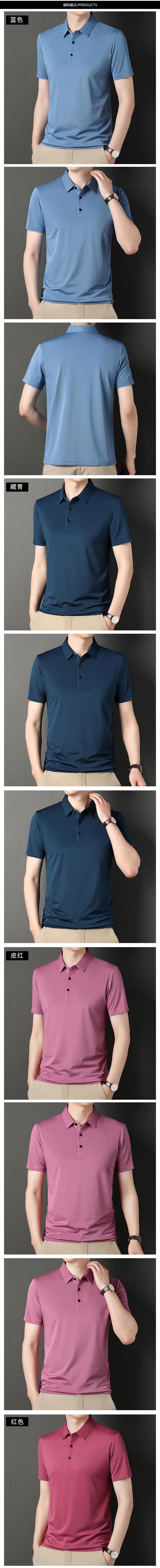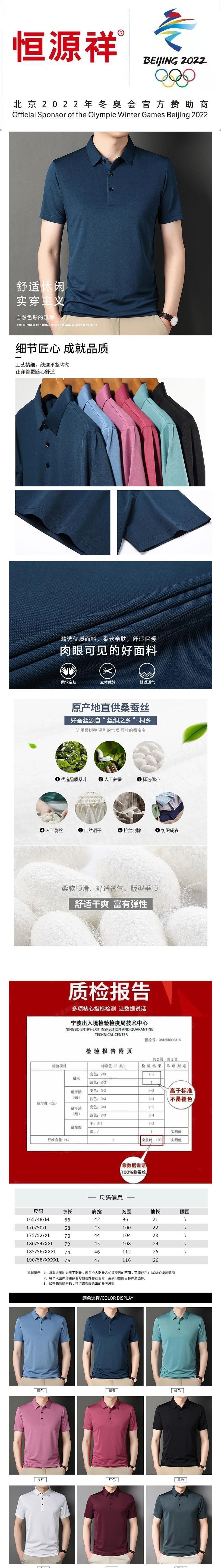 여름 Hengyuanxiangcai 양 100% 뽕나무 실크 반팔 티셔츠 남성용 얼음 실크 대형 실크 청년 및 중년 폴로 셔츠
