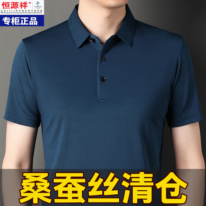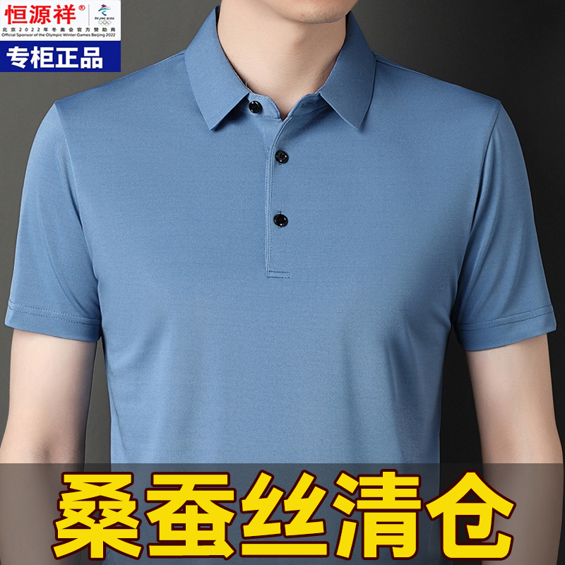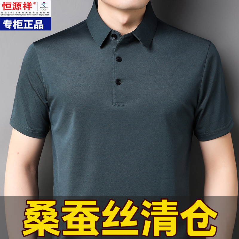 여름 Hengyuanxiangcai 양 100% 뽕나무 실크 반팔 티셔츠 남성용 얼음 실크 대형 실크 청년 및 중년 폴로 셔츠스토어 가기