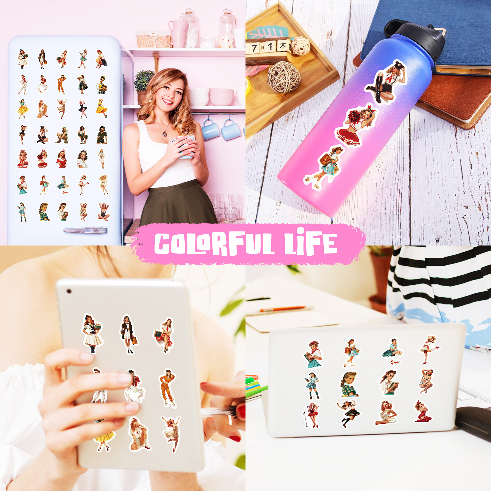 50 레트로 소녀 낙서 스티커 유럽과 미국 전문 여성 헵번 스타일 장식 수하물 노트북 스티커스토어 가기