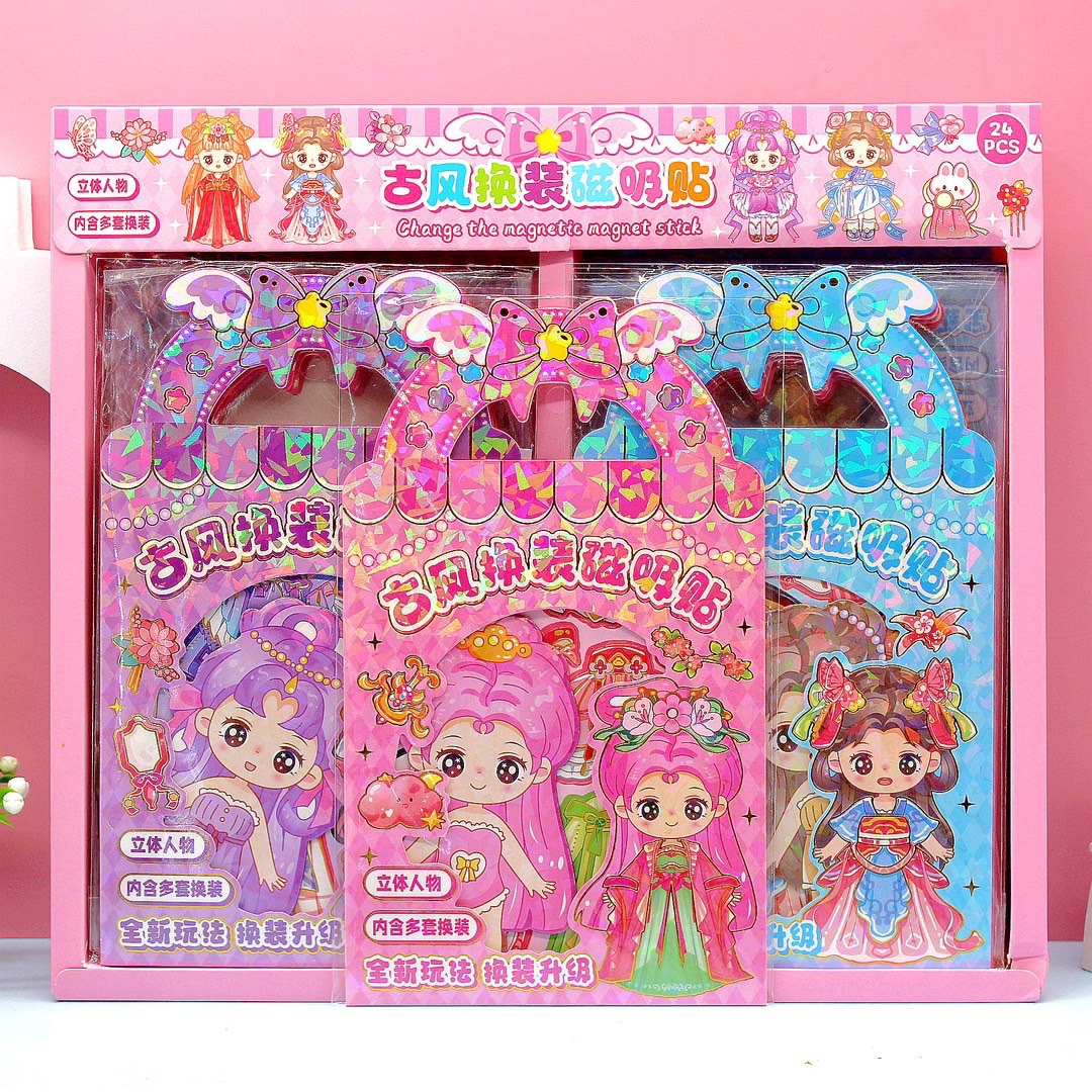 새로운 자기 골동품 공주 원피스 업 스테레오 스티커 귀여운 만화 냉장고 스티커 높은 색상 가치 소녀 마그네틱 스티커 트렌디스토어 가기