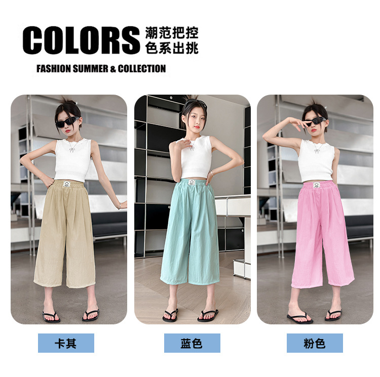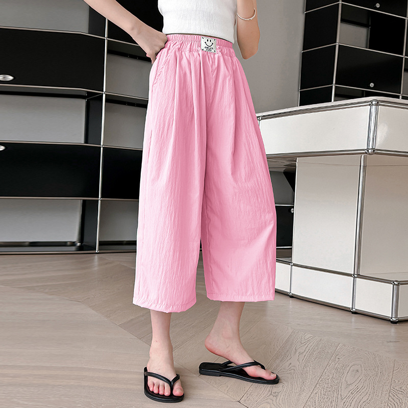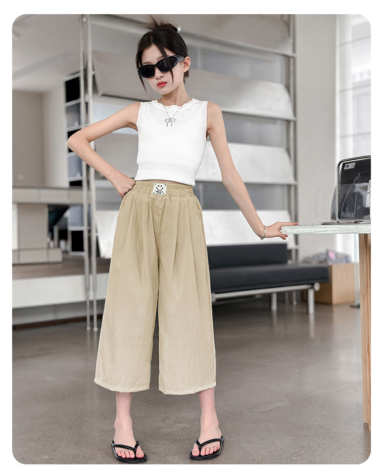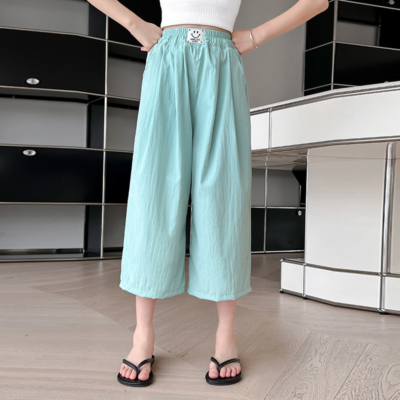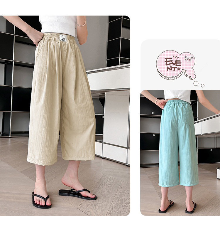 여자 카프리 팬츠 2024 여름 얇은 넓은 다리 바지 여자 서양식 야마모토 느슨한 유행 큰 아이 아이스 실크 캐주얼