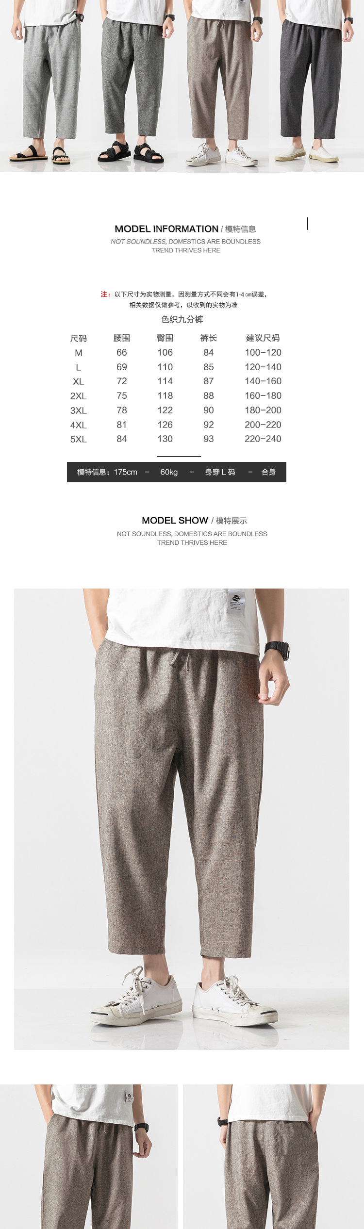 2024 새로운 여름 홍콩 스타일 단색 느슨한 8 점 캐주얼 바지 일본면 및 리넨 스트레이트 다리 바지 얇은 유행 남성스토어 가기
