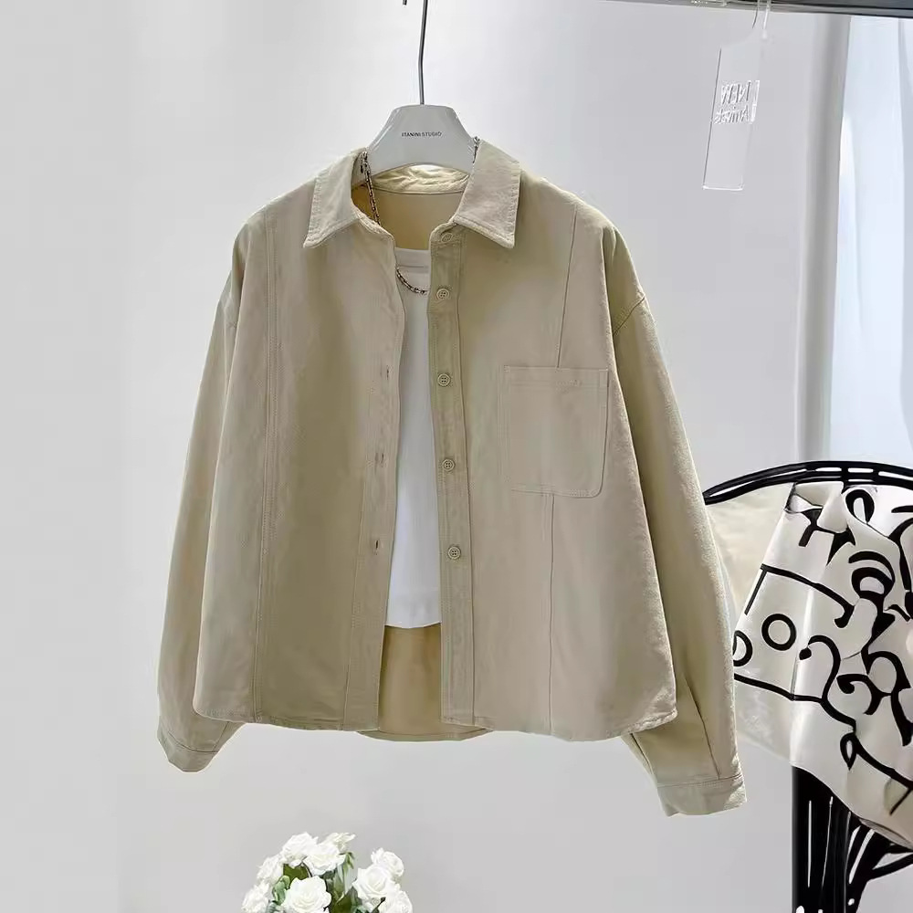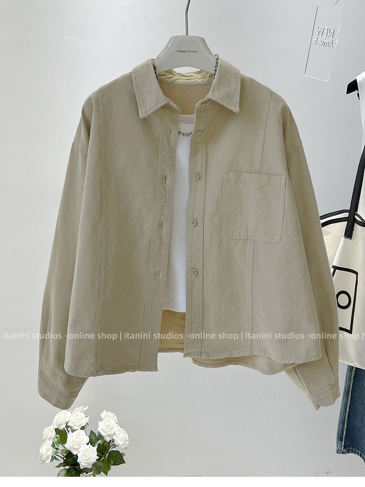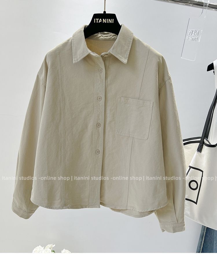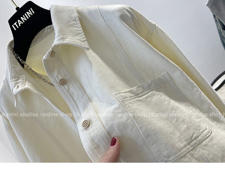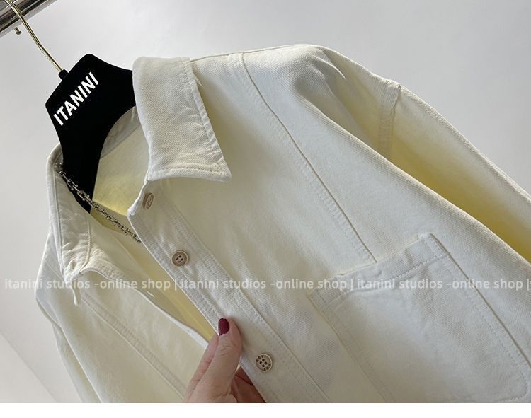 홍콩 스타일 소금 스타일 짧은 셔츠 여성용 긴팔 새로운 느슨한 올 매치 재킷 캐주얼 슬리밍 탑 재킷 봄과 가을스토어 가기