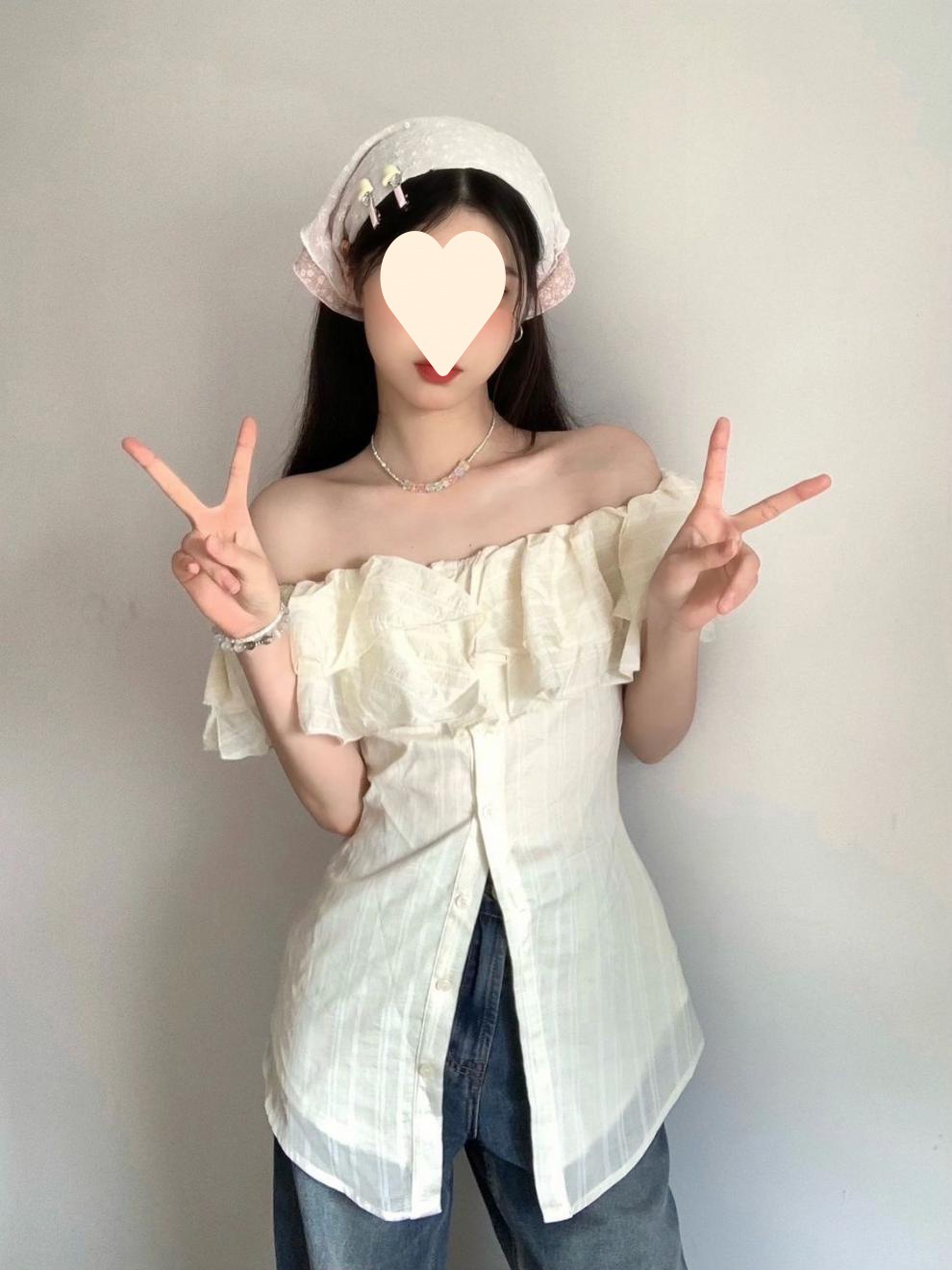 달콤하고 순수한 스파이스 걸의 오프 숄더 여성 여름, 슬리밍 허리 디자인 슬림 핏 프렌치 셔츠