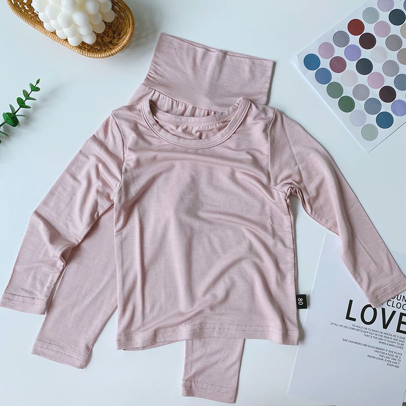 어린이 잠옷 모달 봄과 가을 높은 허리 배꼽 보호 홈 의류 소년 소녀 아기의 가을 옷과 바지 속옷 세트