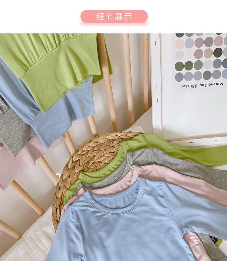 어린이 잠옷 모달 봄과 가을 높은 허리 배꼽 보호 홈 의류 소년 소녀 아기의 가을 옷과 바지 속옷 세트스토어 가기