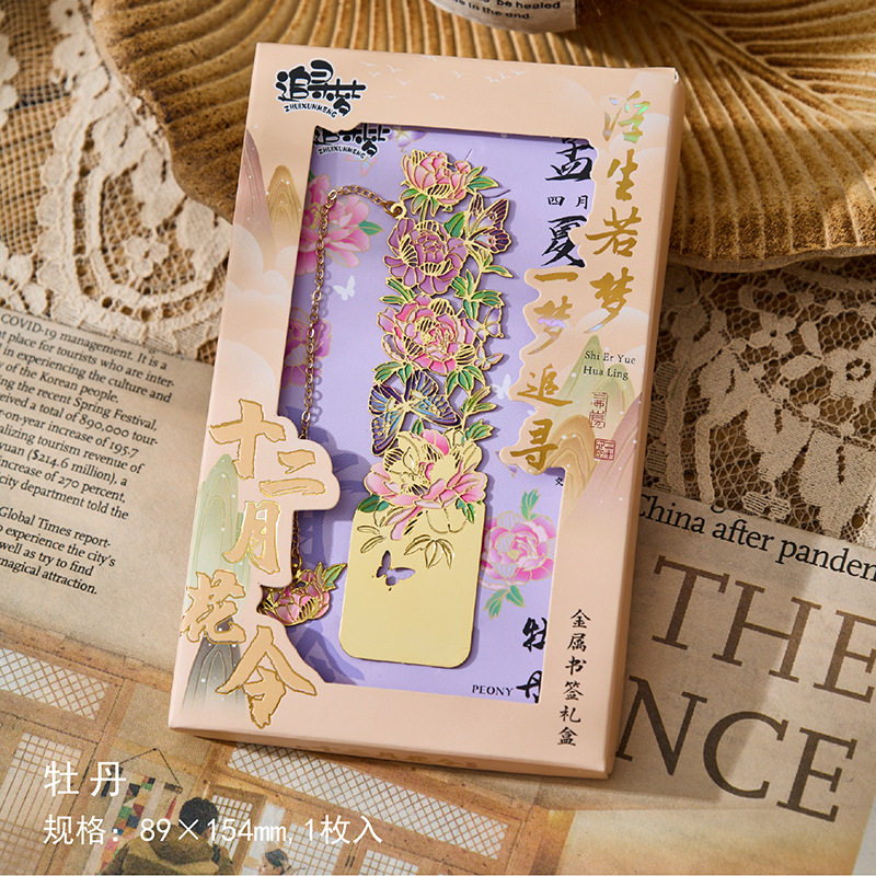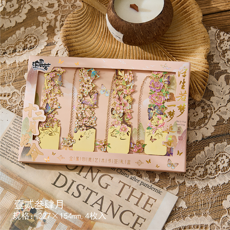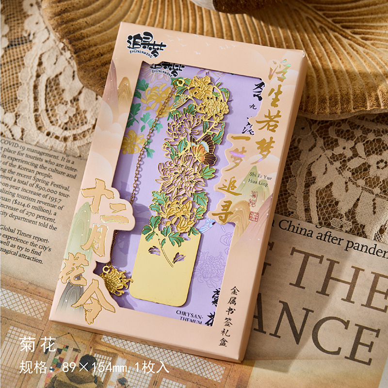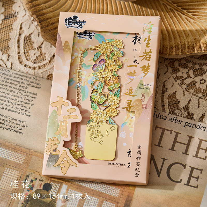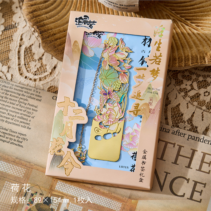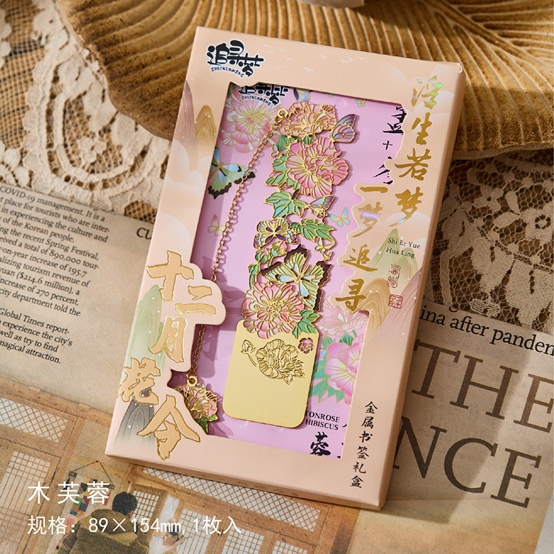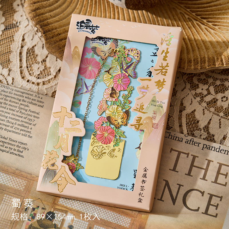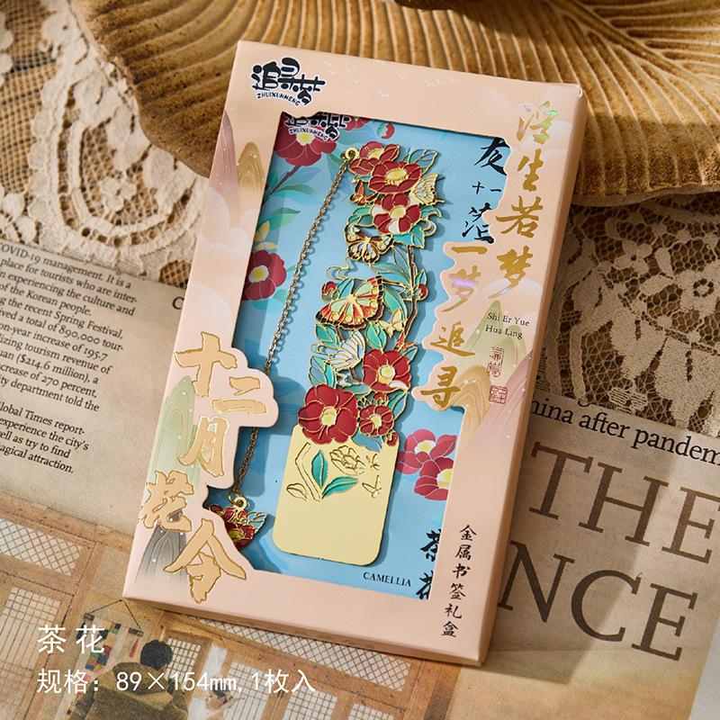 • 12 월 꽃 주문 금속 책갈피-Wu Lu Qi, 8 월 4 일 선물 상자
