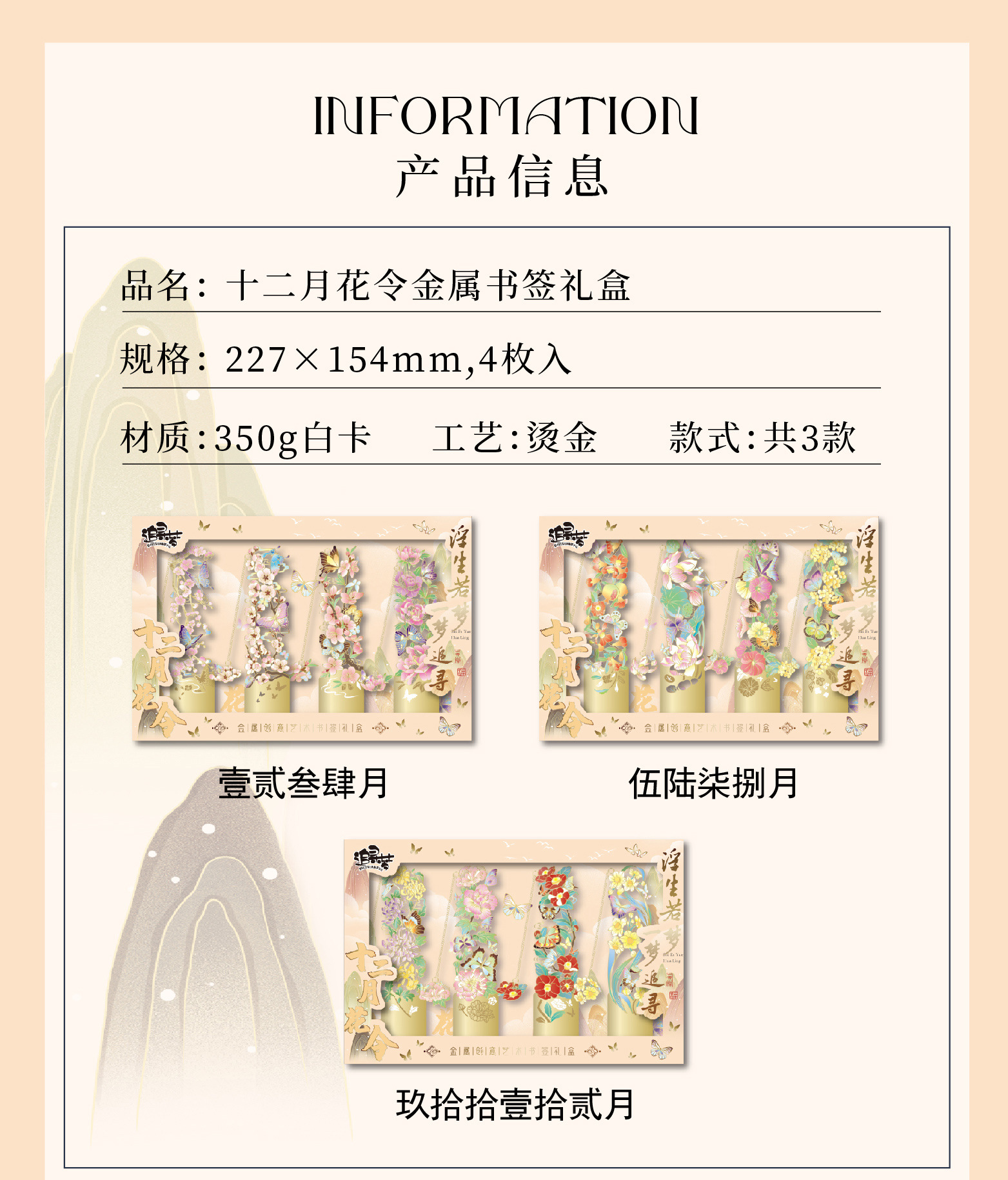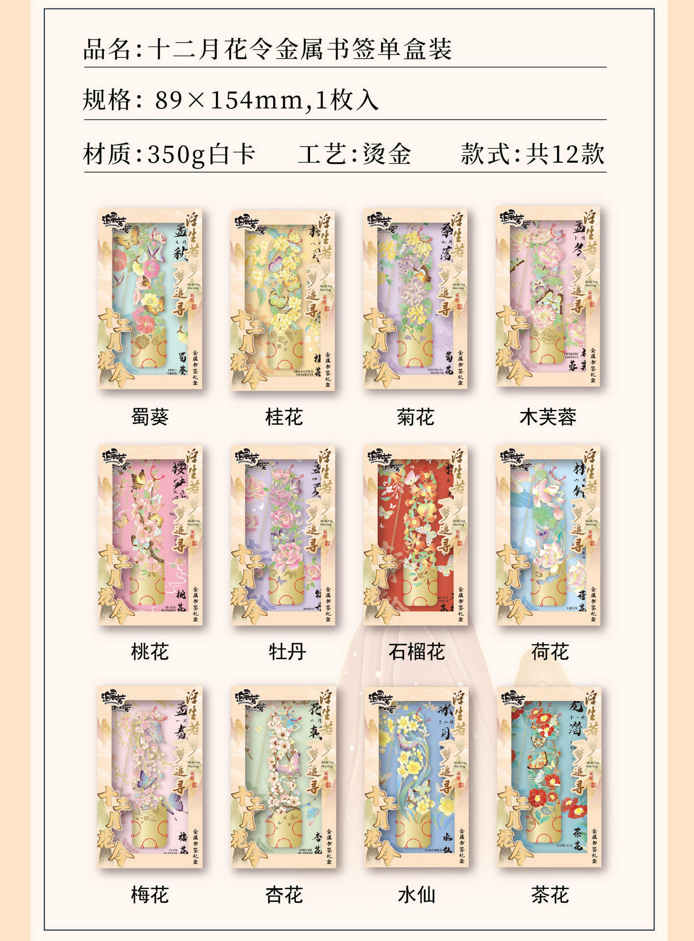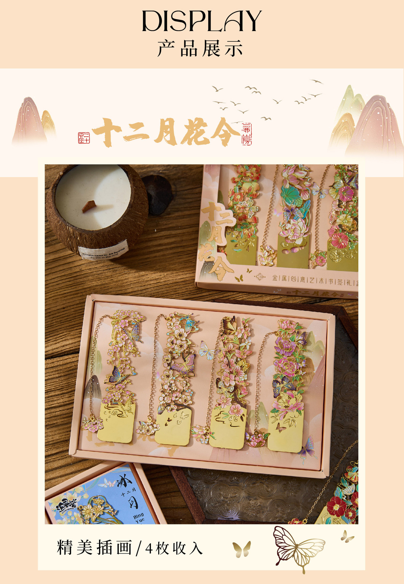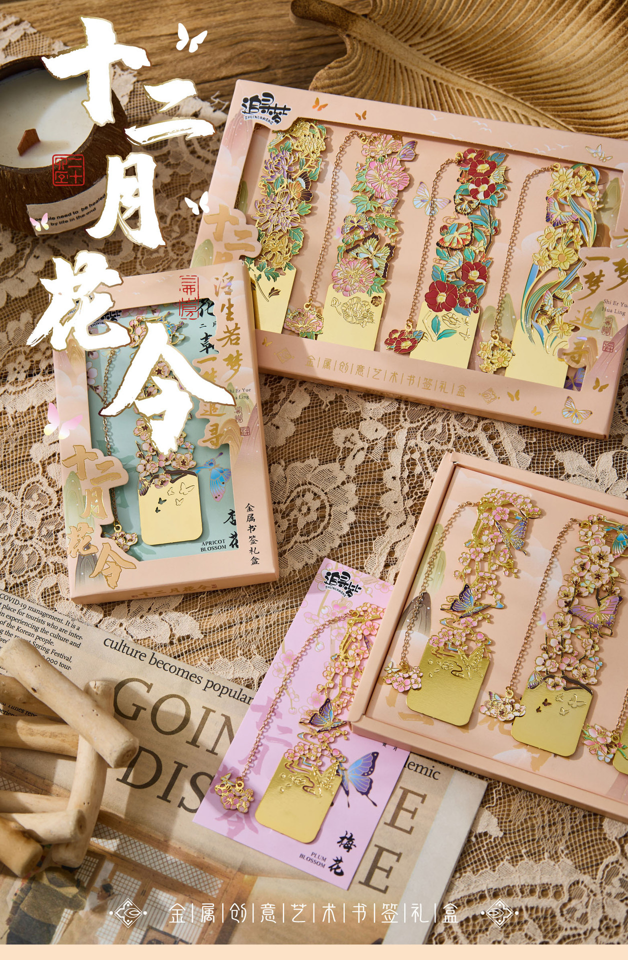 • 12 월 꽃 주문 금속 책갈피-Wu Lu Qi, 8 월 4 일 선물 상자