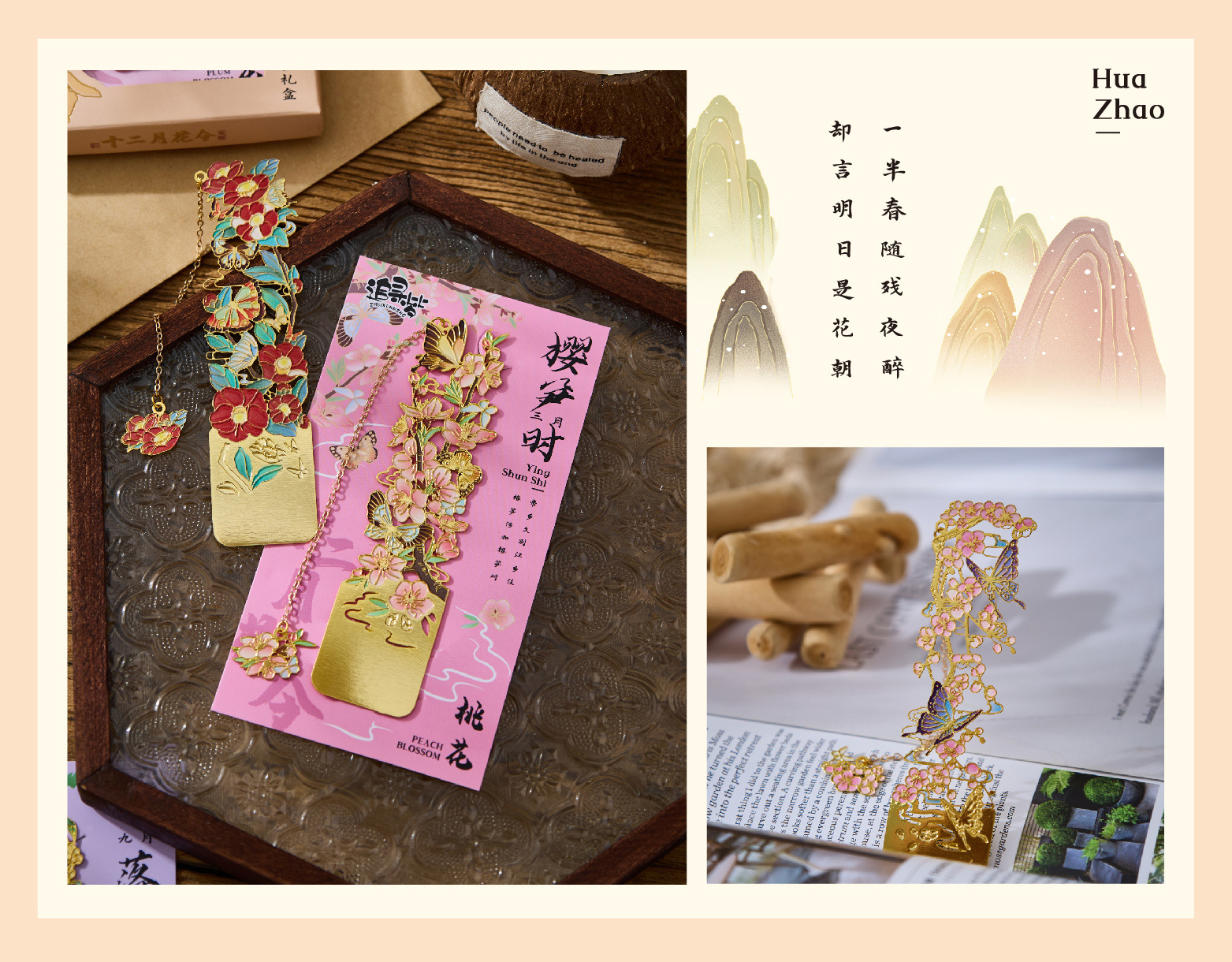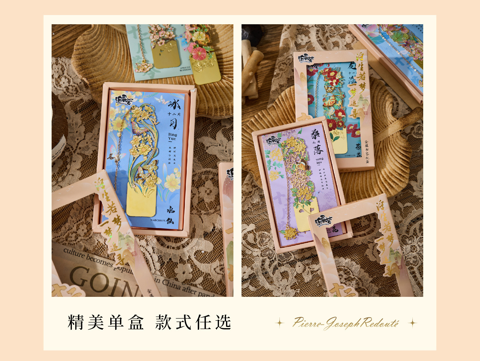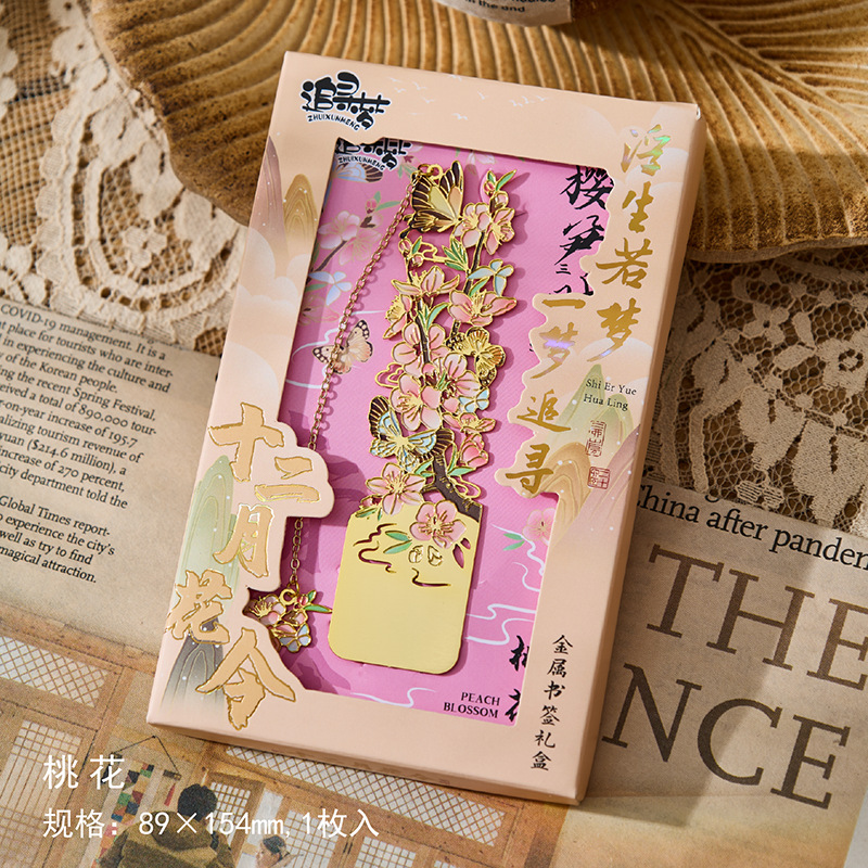 • 12 월 꽃 주문 금속 북마크-복숭아 꽃 단일 상자