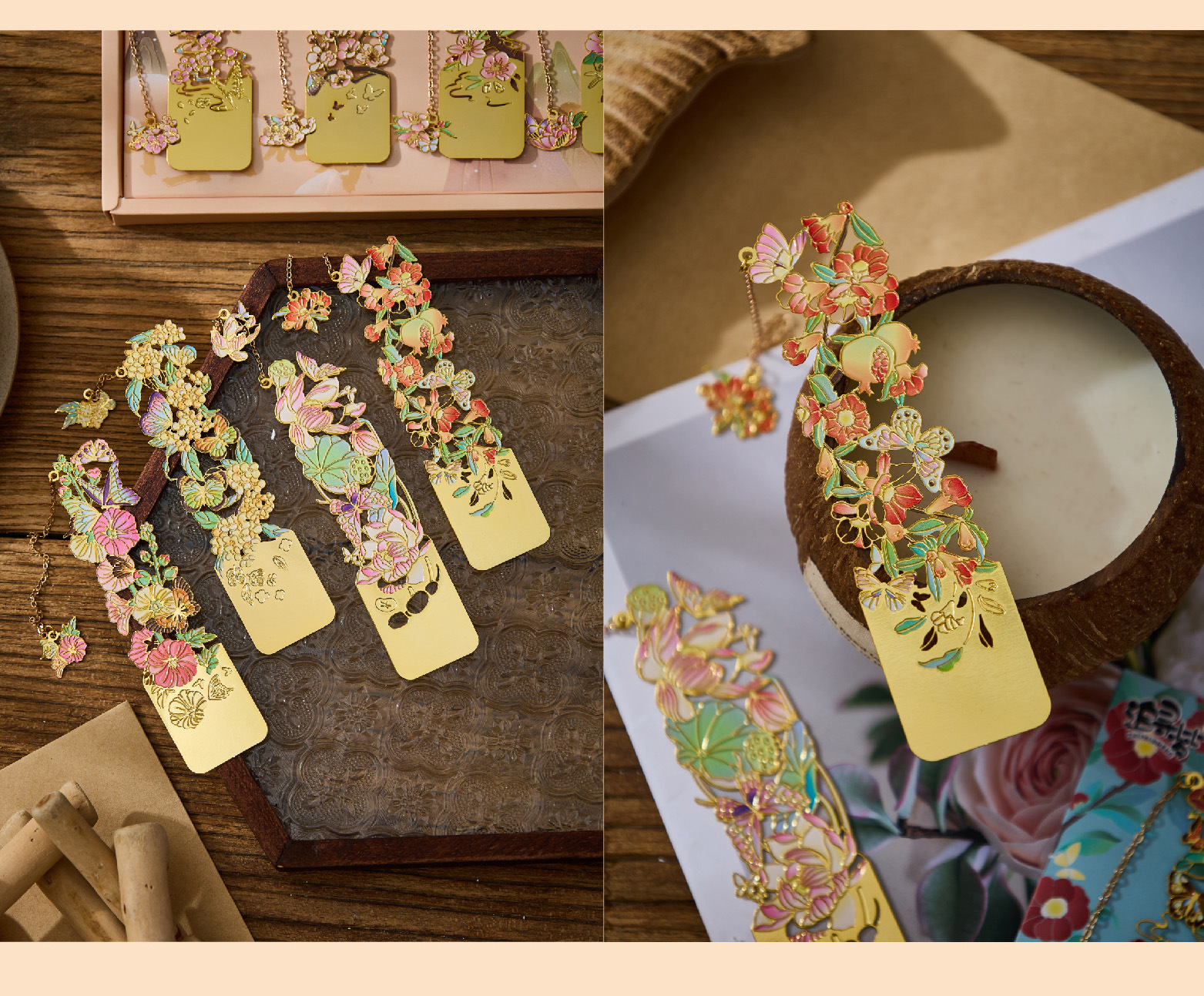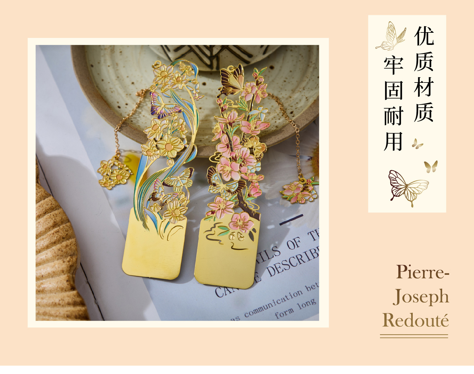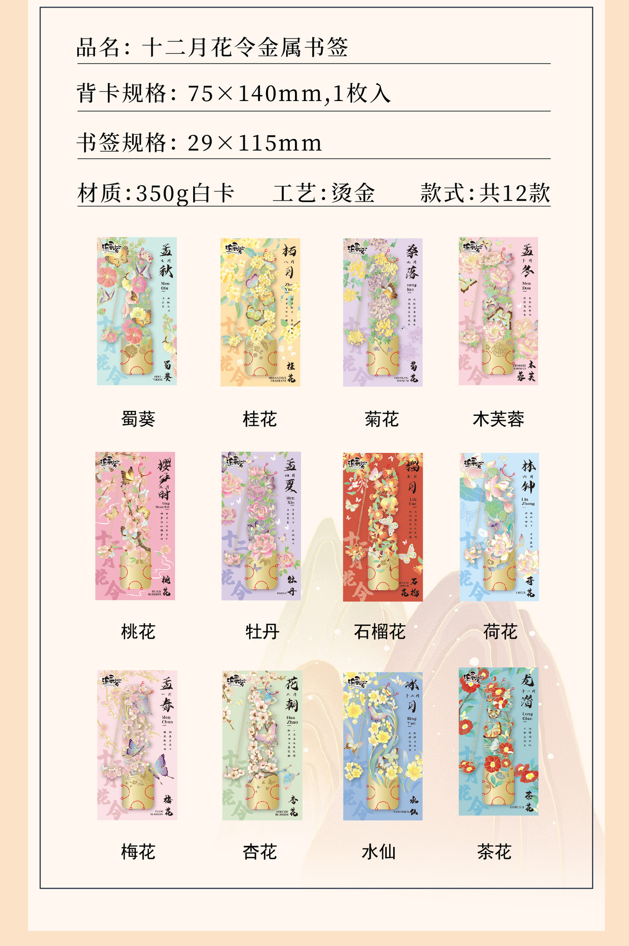 • 12 월 꽃 주문 금속 북마크-복숭아 꽃 단일 상자
