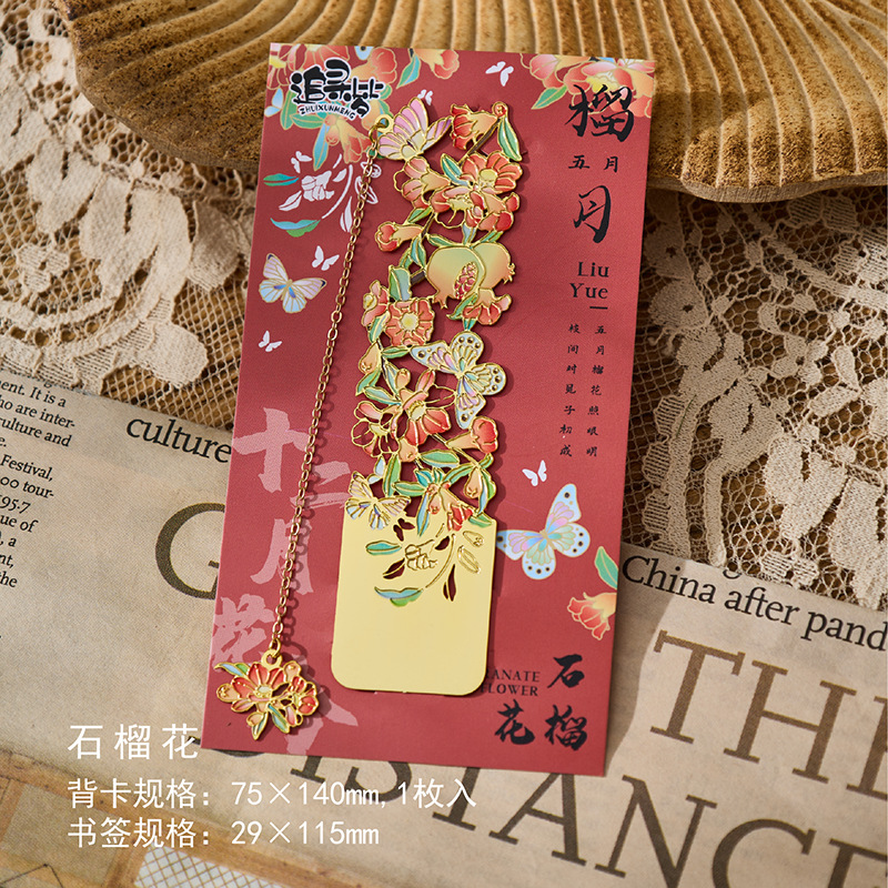 • 12 월 꽃 주문 금속 책갈피-석류 꽃 단일 박스