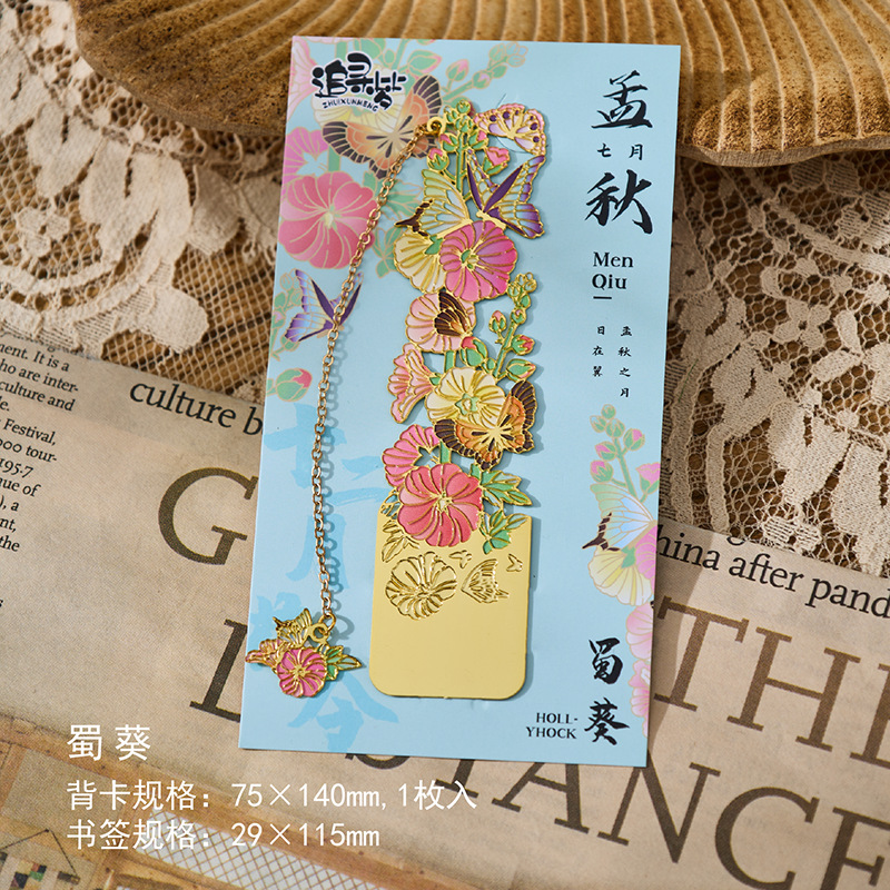 • 12 월 꽃 주문 금속 북마크-Hollyhock 단일 상자