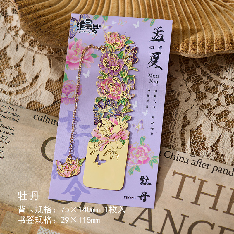 • 12 월 꽃 주문 금속 책갈피-모란 단일 상자