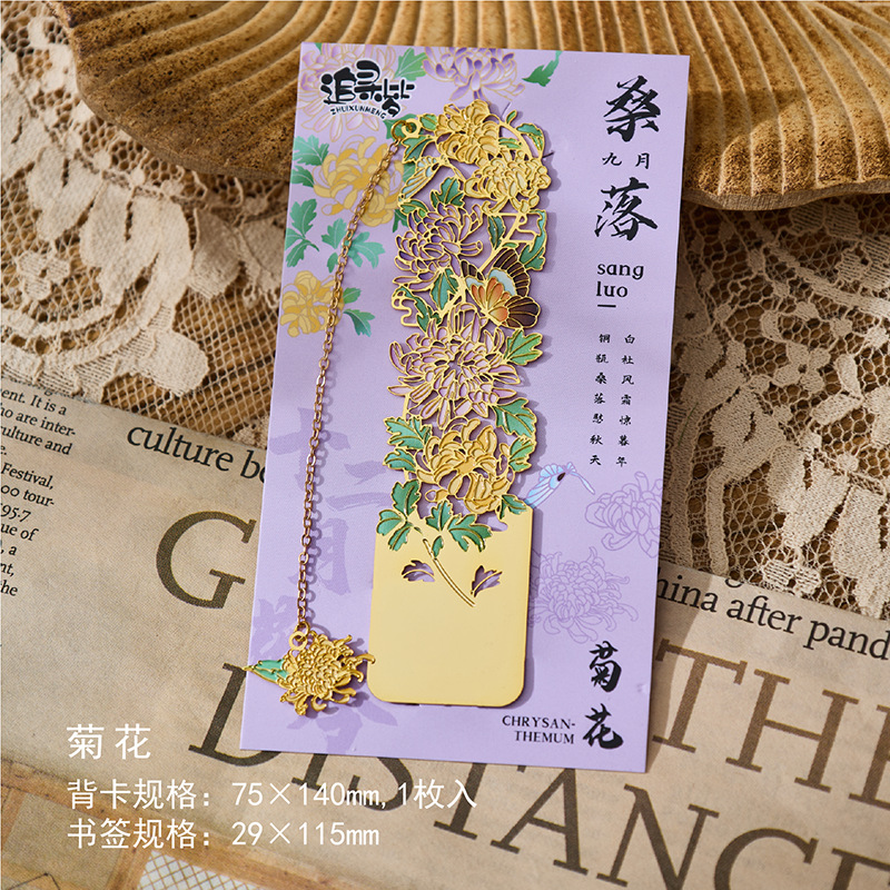 • 12 월 꽃 주문 금속 책갈피-국화 단일 상자