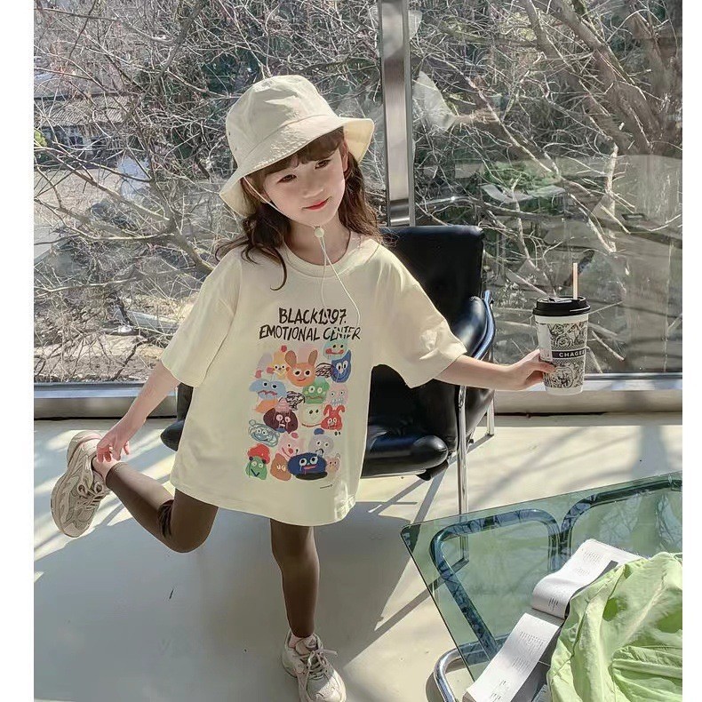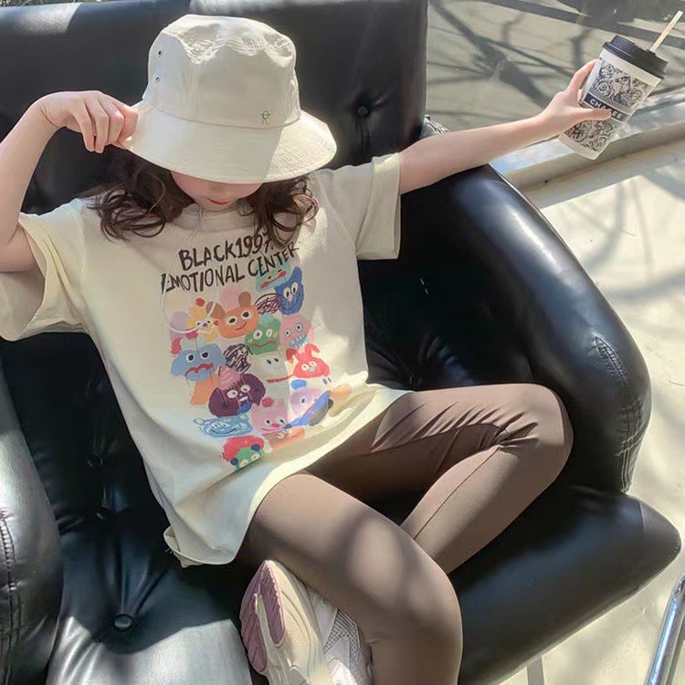 여자 반팔 여름 티셔츠 2025 새로운 한국 스타일 외국 스타일 어린이 어린 소녀 티셔츠 탑 여름 바닥 셔츠스토어 가기