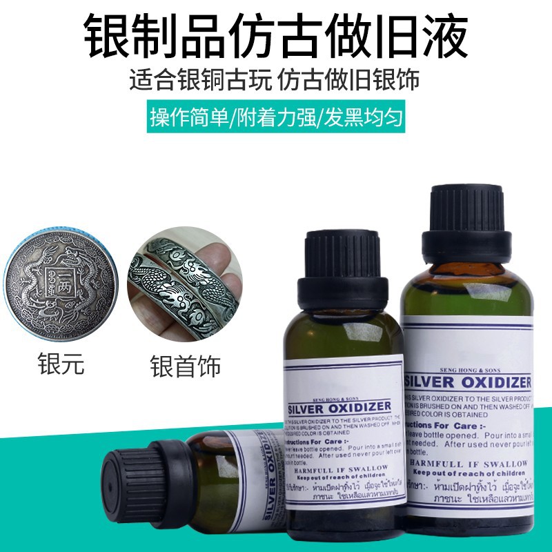 빈티지 실버 장식품으로 오래된 골동품 수은이 오래된 머리카락을 검은 색으로 만들어 오래된 액체 순수 산화 블랙 에이전트 골드 도구를 만듭니다.스토어 가기