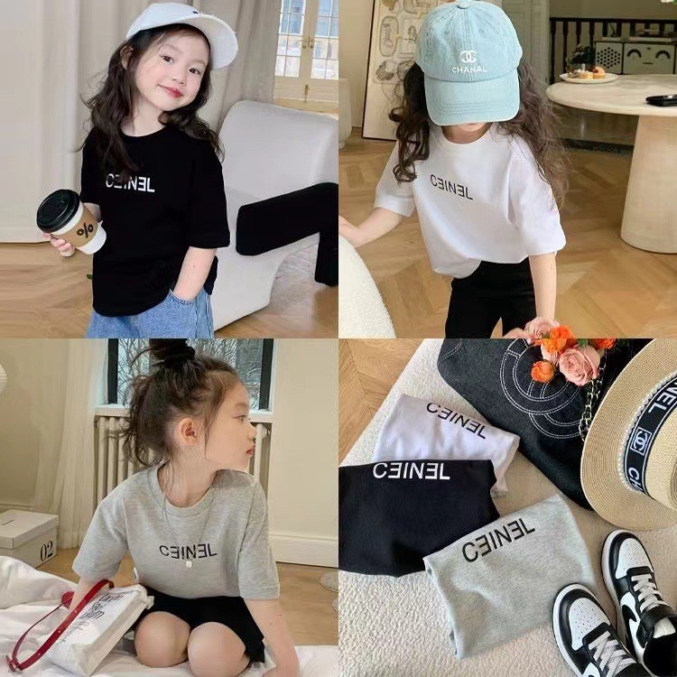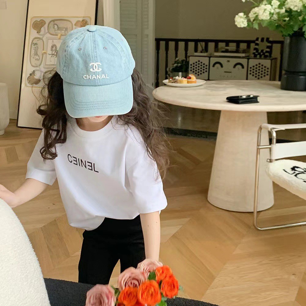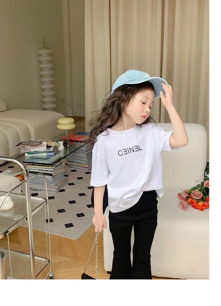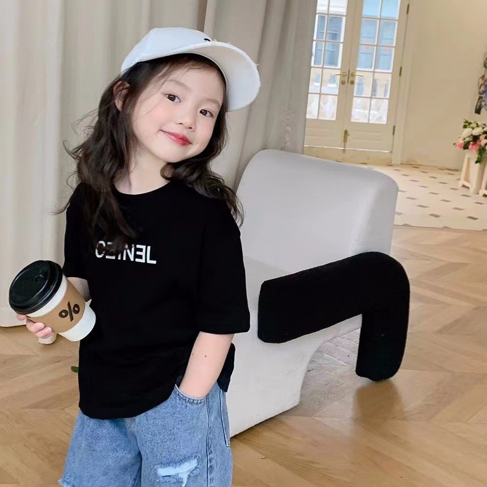 여자 여름 코튼 반팔 티셔츠 2024 여름 새로운 서양식 어린이 편지 인쇄 라운드 넥 올 매치 탑