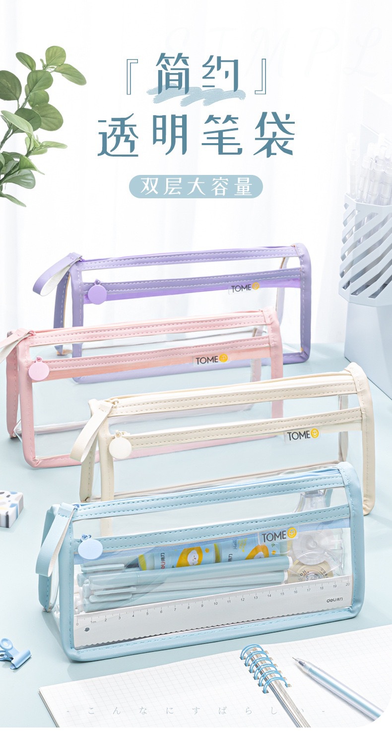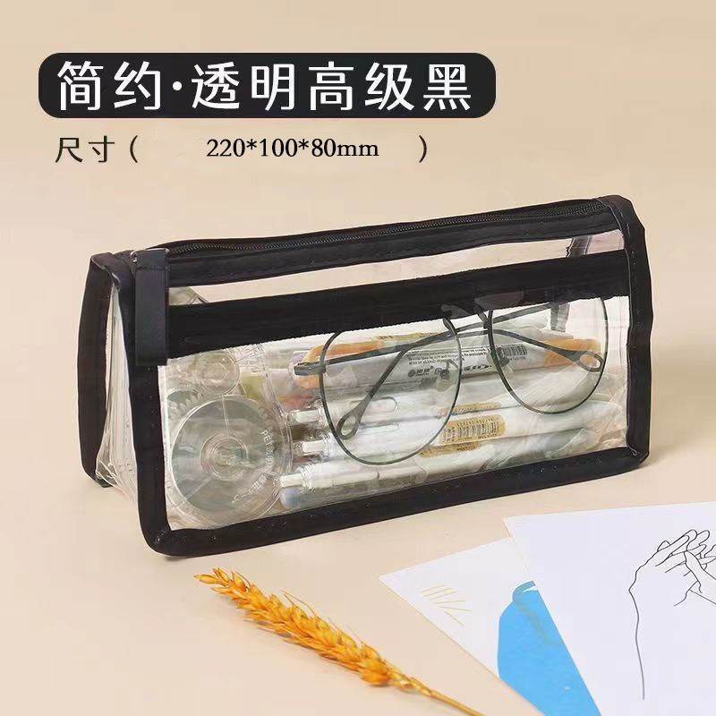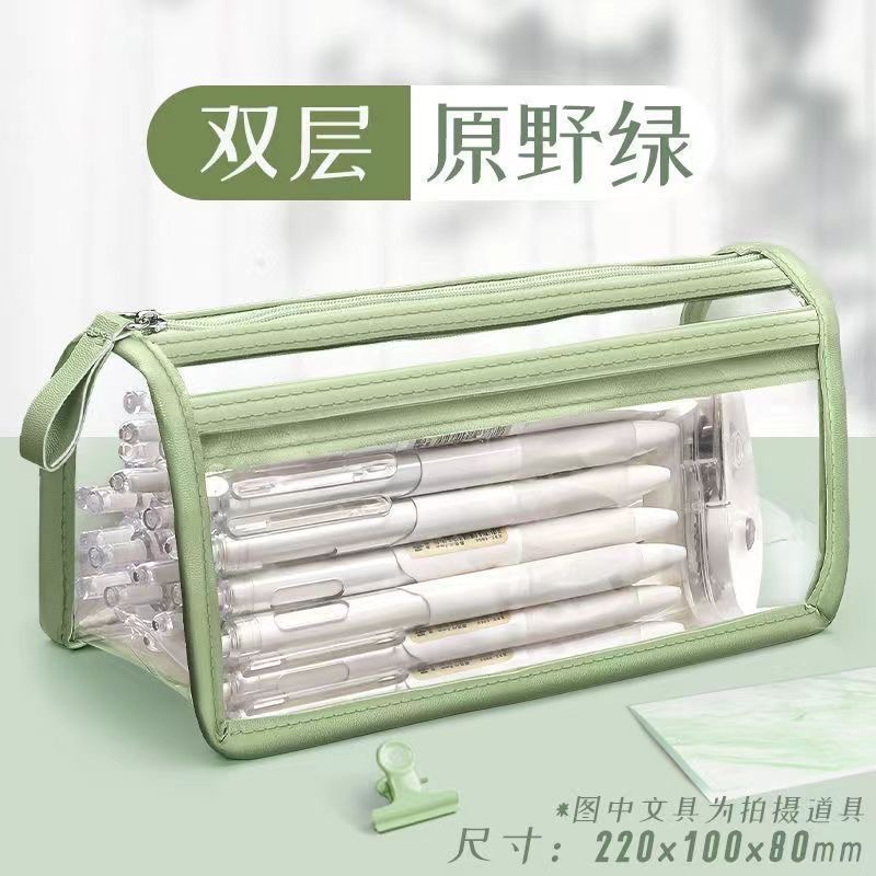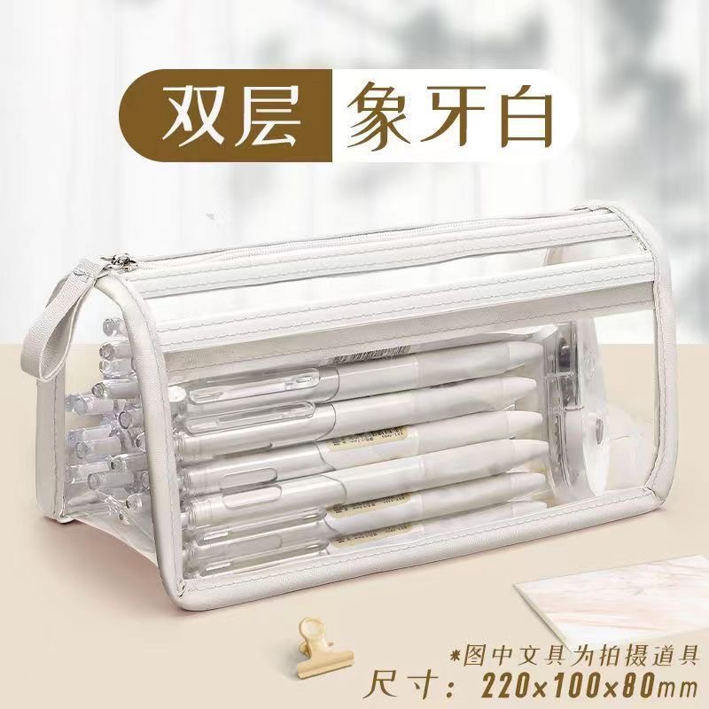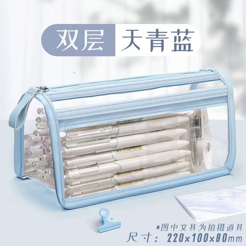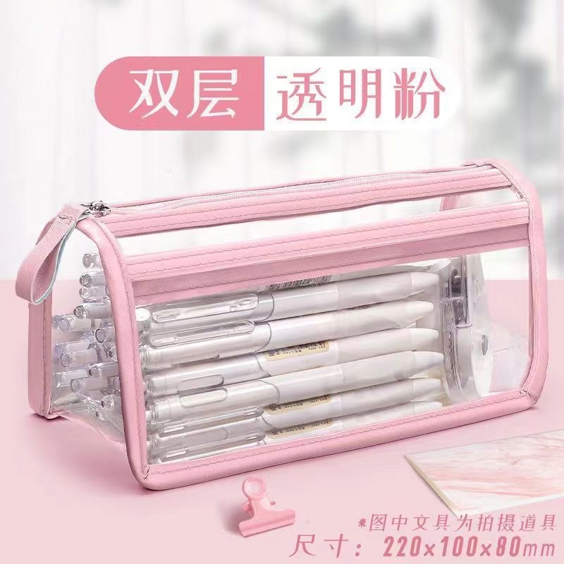 투명 연필 케이스 Ins 중학생 간단한 더블 레이어 일본어 문구 연필 케이스 초등학교 학생 유니버설 용량 크기