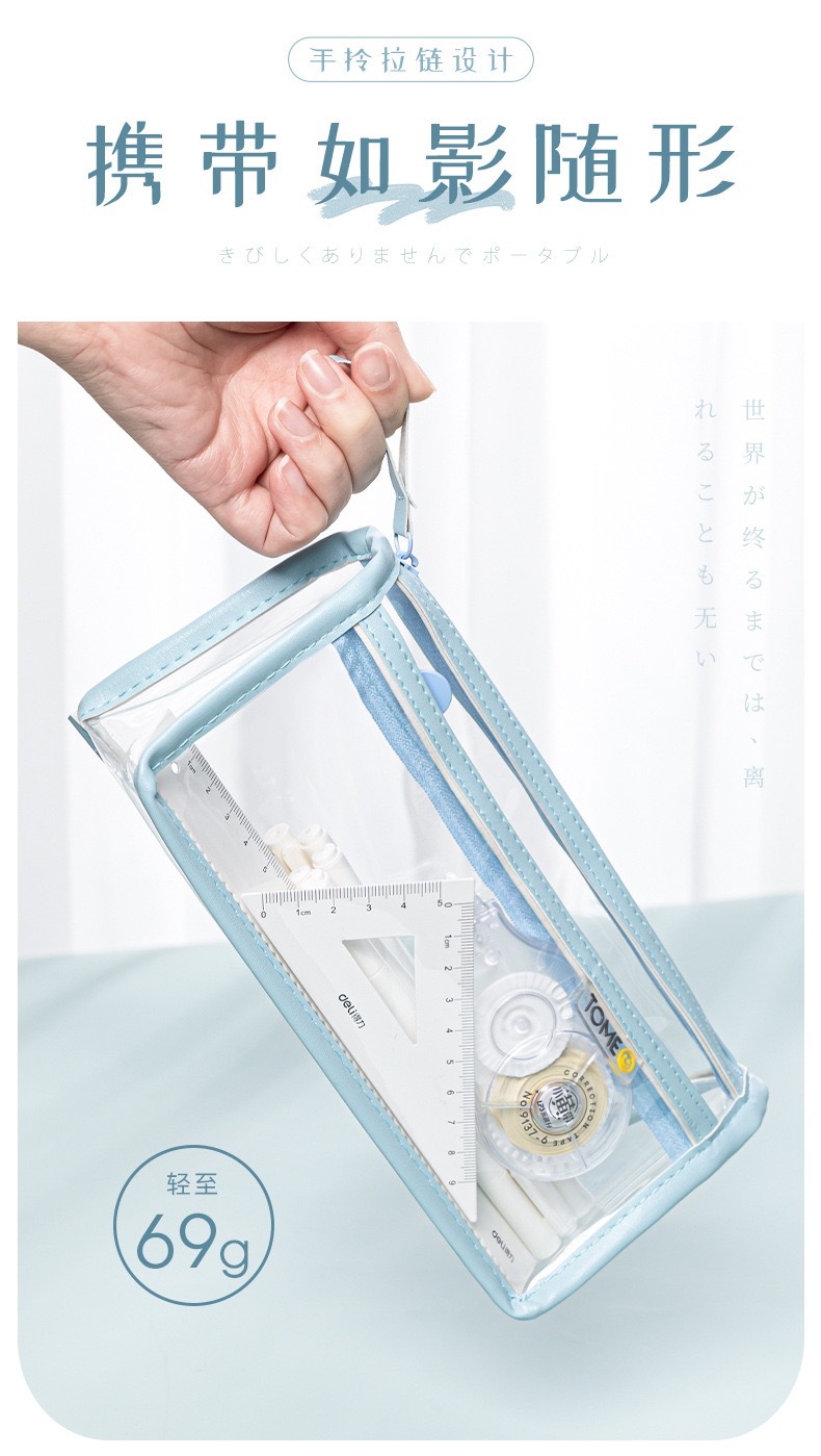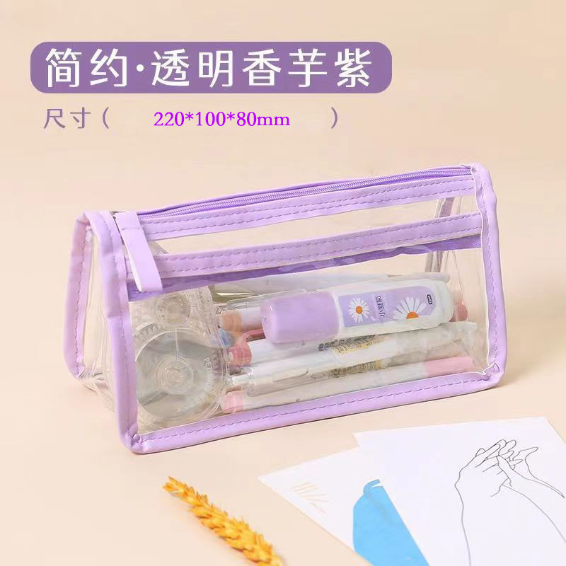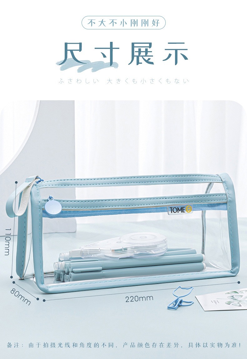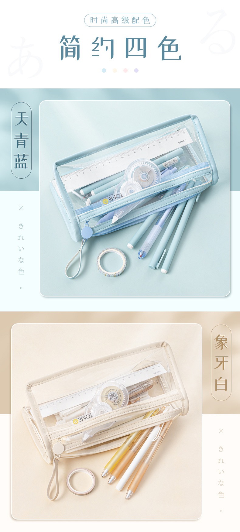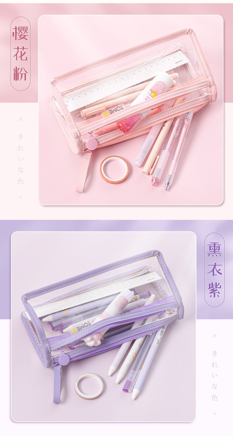 투명 연필 케이스 Ins 중학생 간단한 더블 레이어 일본어 문구 연필 케이스 초등학교 학생 유니버설 용량 크기