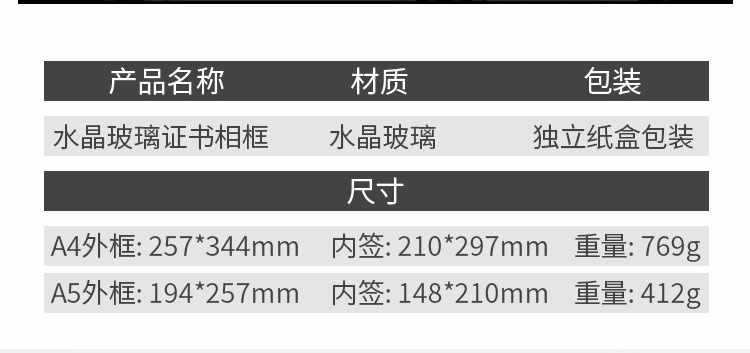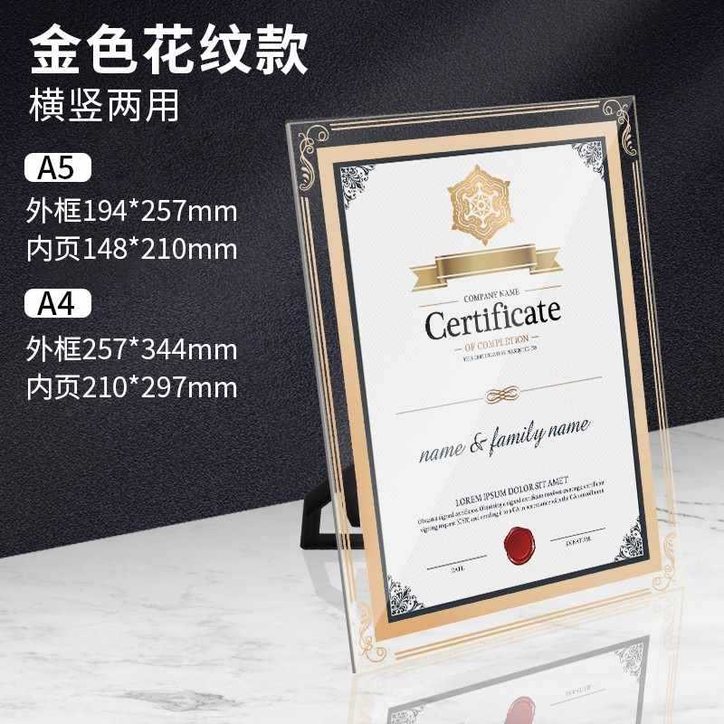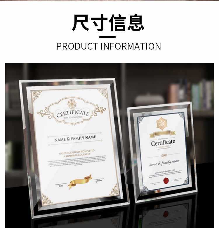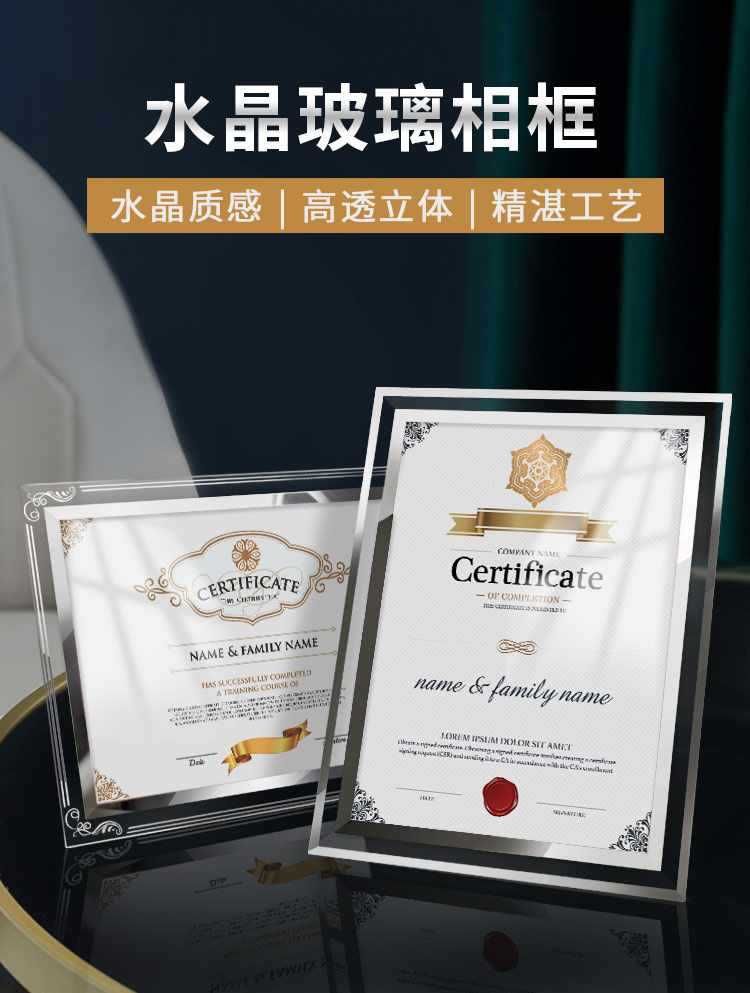 크리스탈 유리 명예 증서 A4 상장 인증서 졸업 증서 액자 임명서 커버 문서스토어 가기