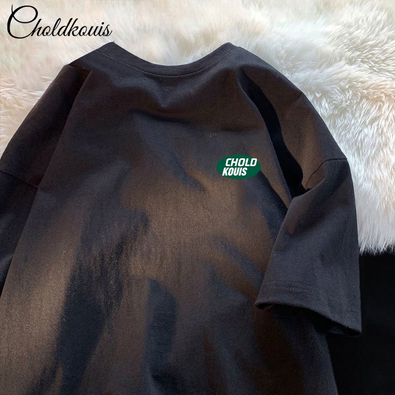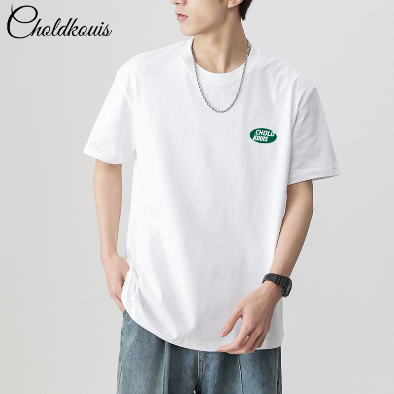 남성용 헤비 티셔츠 남성용 퓨어 코튼 쇼트 슬리브 여름 라운드 넥 아메리칸 스타일 새로운 유행 하이 엔드 하프 슬리브 루즈스토어 가기